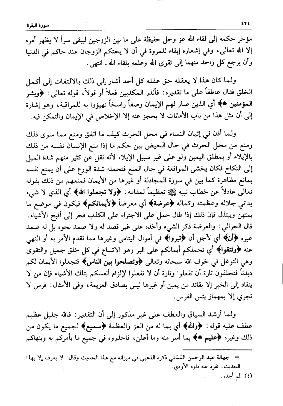 مؤخر حكمه إلى لقاء الله عز وجل حفيظة على ما بين الزوجين ليبقى سراً لا يظهر أمره إلا الله تعالى ، وفي إشعاره إبقاء للمروة في أن لا يحتكم الزوجان عند حاكم في الدنيا وأن يرجع كل واحد منهما إلى تقوى الله وعلمه بلقاء الله - انتهى .
