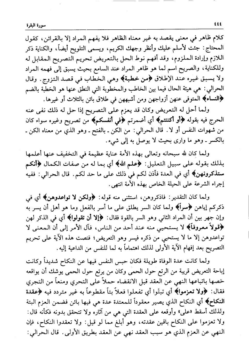 وقال الحرالي : هي هيئة الحال فيما بين الخاطب والمخطوبة التي النطق عنها هو الخطبة بالضم ) النساء ( المتوفى عنهن أزواجهن ومن أشبههن في طلاق بائن بالثلاث أو غيرها .