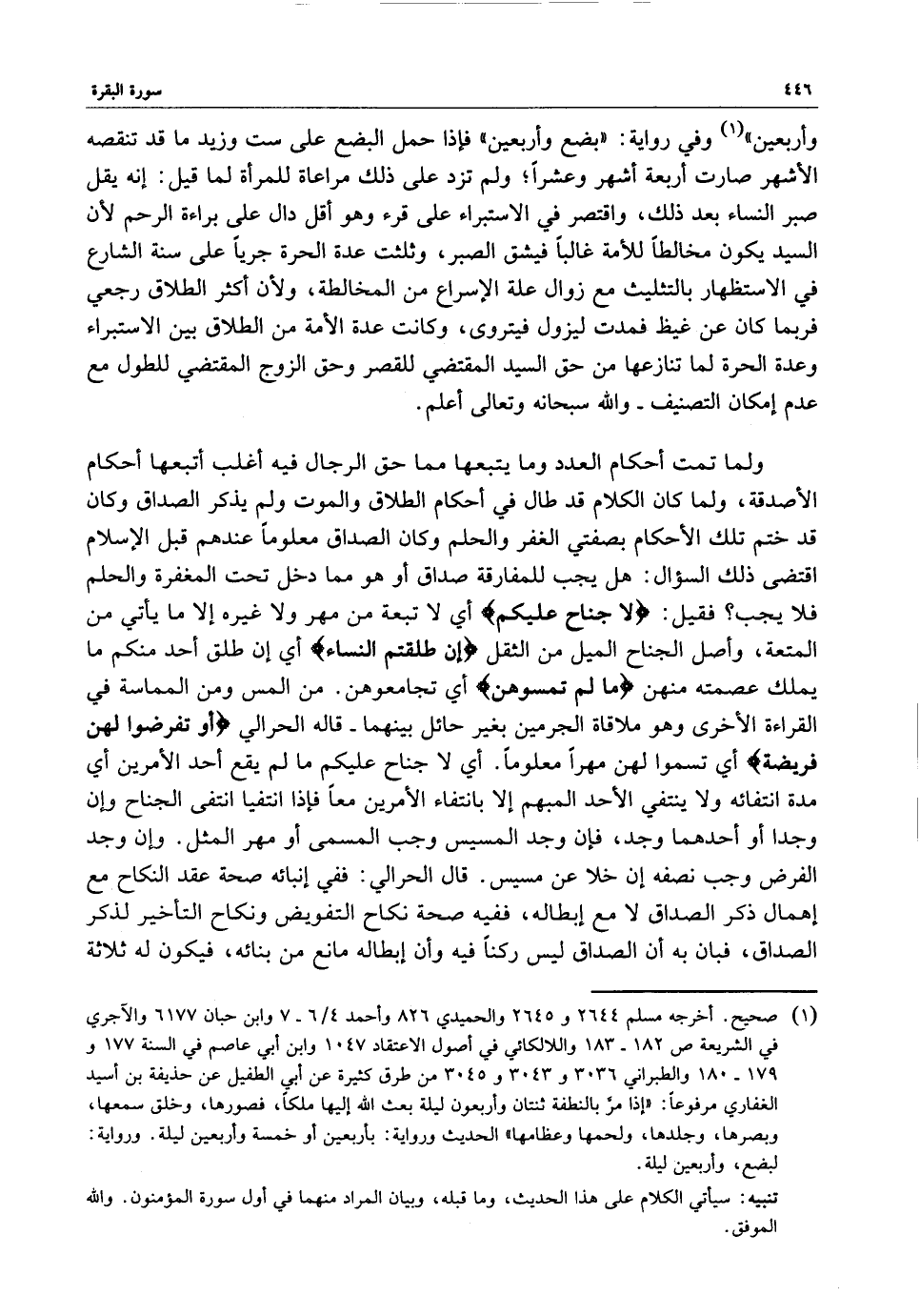 قال الحرالي : ففي إنبائه صحة عقد النكاح مع إهمال ذكر الصداق لا مع إبطاله ، ففيه صحة نكاح التفويض ونكاح التأخير لذكر الصداق ، فبان به أن الصداق ليس ركناً فيه وأن إبطاله مانع من بنائه ، فيكون له ثلاثة