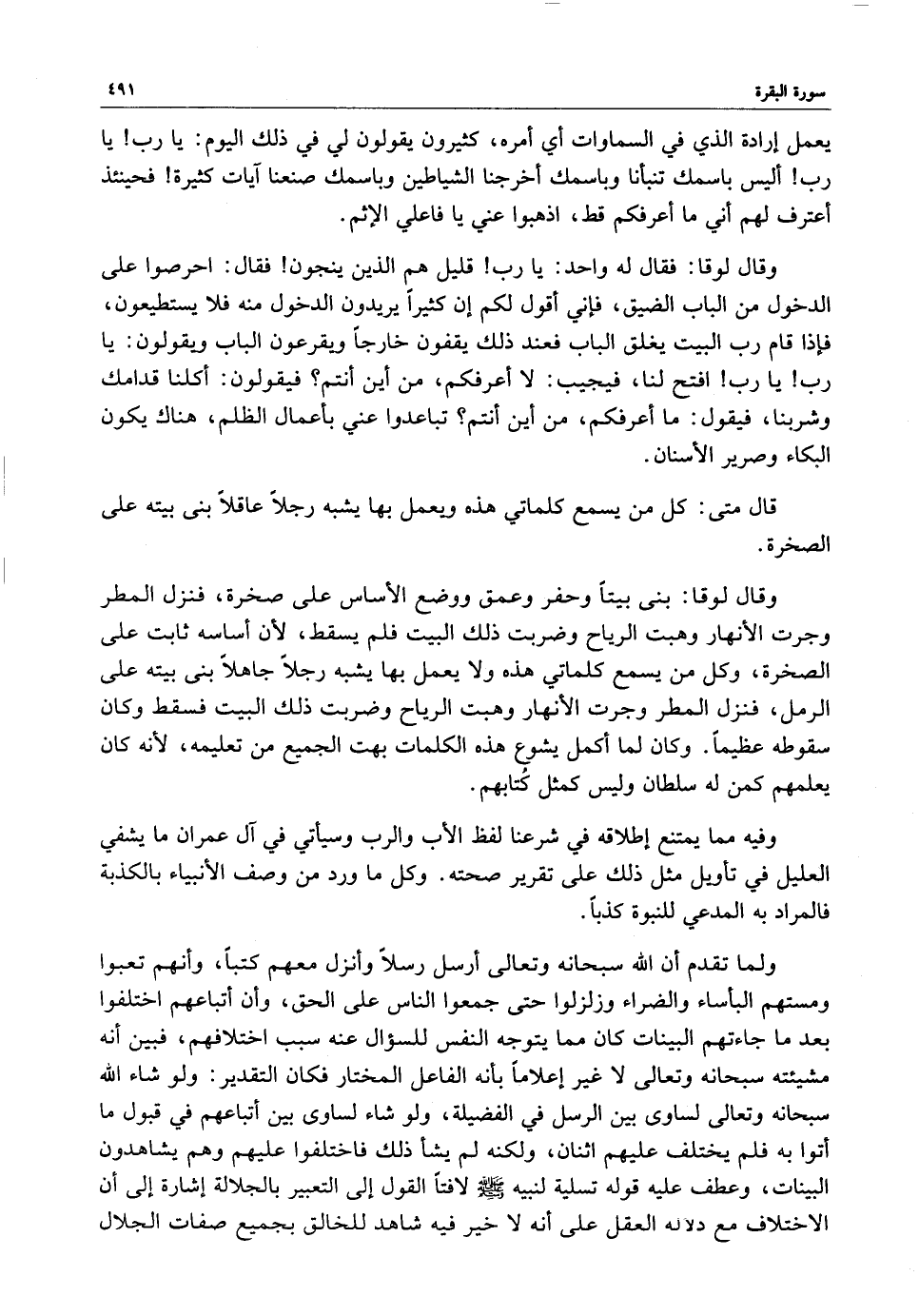 يعمل إرادة الذي في السماوات أي أمره ، كثيرون يقولون لي في ذلك اليوم : يا رب يا رب أليس باسمك تنبأنا وباسمك أخرجنا الشياطين وباسمك صنعنا آيات كثيرة فحينئذ أعترف لهم أني ما أعرفكم قط ، اذهبوا عني يا فاعلي الإثم .