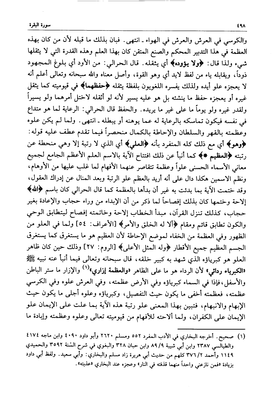 فبان بذلك ما قبله لأن من كان بهذه العظمة في هذا التدبير المحكم والصنع المتقن كان بهذا العلم وهذه القدرة التي لا يثقلها شيء ولذا قال : ( ولا يؤده ) أي يثقله .