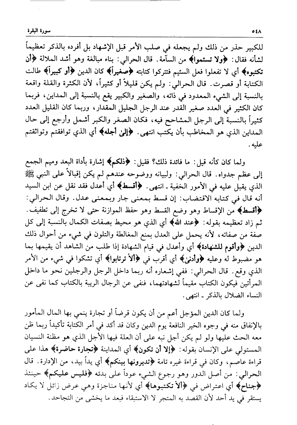 قال الحرالي : بناء مبالغة وهو أشد الملالة ) أن تكتبوه ) أي لا تفعلوا فعل السئيم فتتركوا كتابته ) صغيراً ( كان الدين ) أو كبيراً ( طالت الكتابة أو قصرت .