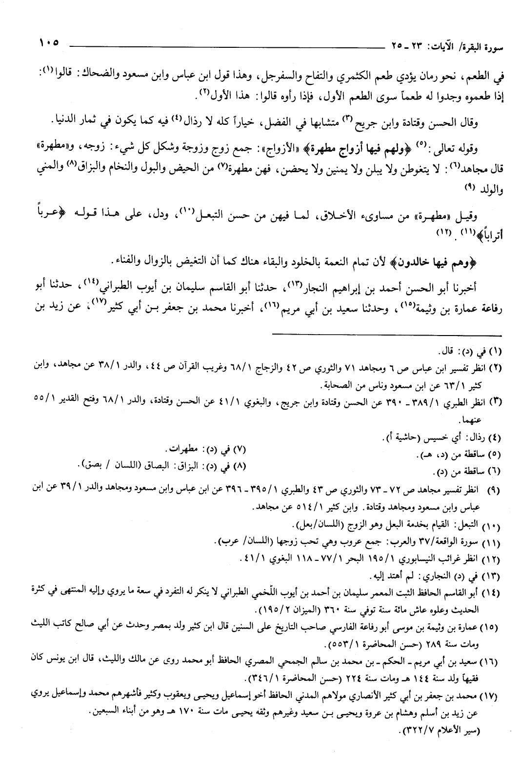 وقوله تعالى: {وَلَهُمْ فِيهَا أَزْوَاجٌ مُطَهَّرَةٌ} [البقرة: 25] : الأزواج: جمع زوج وزوجة، وشكل كل شيء: زوجه، ومطهرة: قال مجاهد: لا يتغوطن ولا يبلن ولا يمنين ولا يحضن، فهن مطهرة من الحيض والبول والنخام والبزاق والمني والولد.
