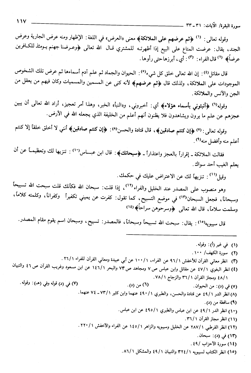 قال مقاتل: إن الله تعالى خلق كل شيء، الحيوان والجماد، ثم علم آدم أسماءها، ثم عرض تلك الشخوص الموجودات على الملائكة، ولذلك قال: ثم عرضهم، لأنه كنى عن المسمين والمسميات، وكان فيهم من يعقل من الجن والإنس والملائكة.