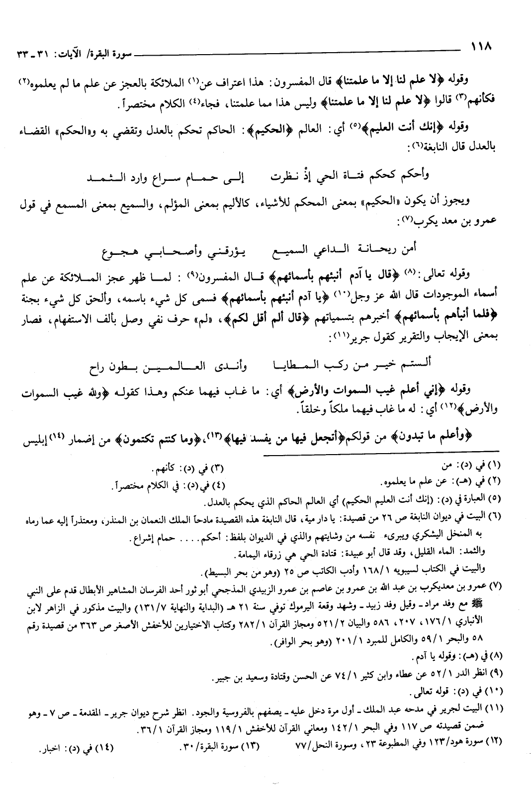 وقوله تعالى: {قَالَ يَا آدَمُ أَنْبِئْهُمْ بِأَسْمَائِهِمْ} [البقرة: 33] : قال المفسرون: لما ظهر عجز الملائكة عن علم أسماء الموجودات قال الله عز وجل: يا آدم أنبئهم بأسمائهم، فسمى كل شيء باسمه، وألحق كل شيء بجنة، {فَلَمَّا أَنْبَأَهُمْ بِأَسْمَائِهِمْ} [البقرة: 33] أخبرهم بتسمياتهم، {قَالَ أَلَمْ أَقُلْ لَكُمْ} [البقرة: 33] لم: حرف نفي وصل بألف الاستفهام، فصار بمعنى الإيجاب والتقرير كقول جرير:
