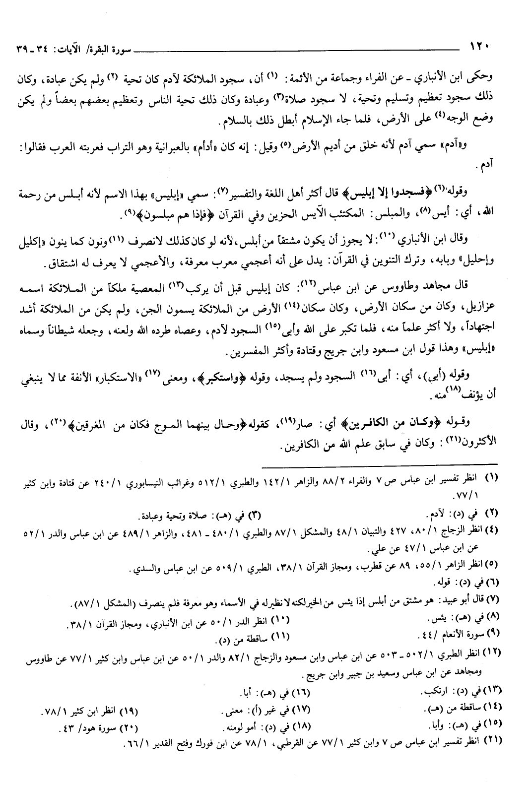 وقوله: {فَسَجَدُوا إِلا إِبْلِيسَ} [البقرة: 34] قال أكثر أهل اللغة والتفسير: سمي إبليس بهذا الاسم لأنه أبلس من رحمة الله، أي: أيس، والمبلس: المكتئب الآيس الحزين، وفي القرآن {فَإِذَا هُمْ مُبْلِسُونَ} [الأنعام: 44] .