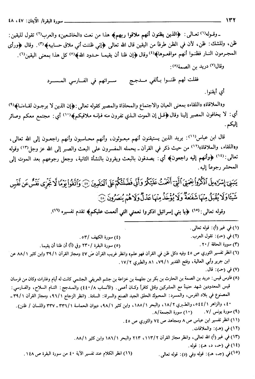 قال ابن عباس: يريد الذين يستيقنون أنهم مبعوثون وأنهم محاسبون وأنهم راجعون إلى الله تعالى، واللقاء والملاقاة، من حيث ذكر فِي القرآن، يحمله المفسرون على البعث والصبر إلى الله عز وجل، وقوله تعالى: وأنهم إليه راجعون أي: يصدقون بالبعث ويقرون بالنشأة الثانية، وجعل رجوعهم بعد الموت إلى المحشر رجوعا إليه.
