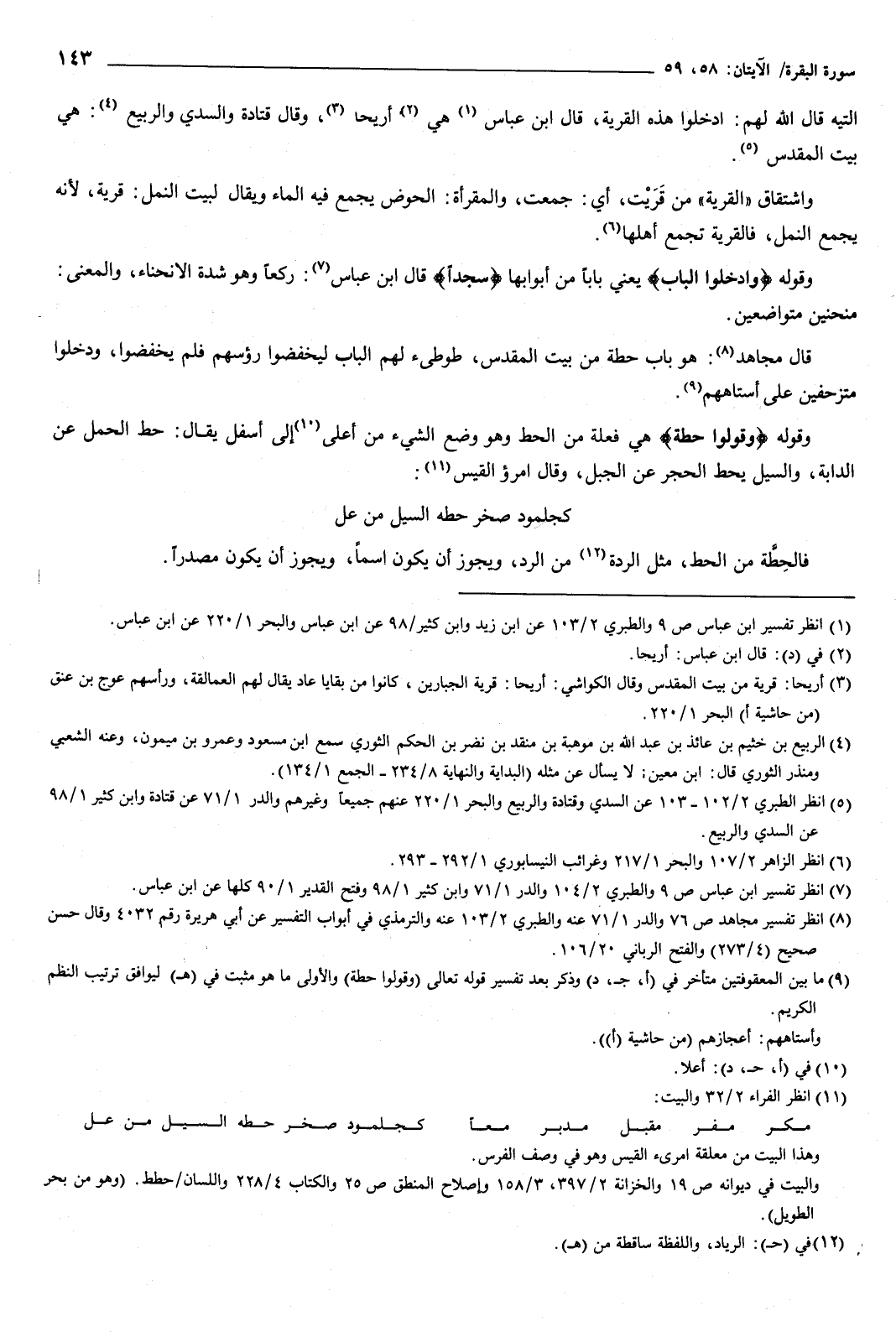 وقوله: وادخلوا الباب يعني بابا من أبوابها، سجدا قال ابن عباس: ركعا.