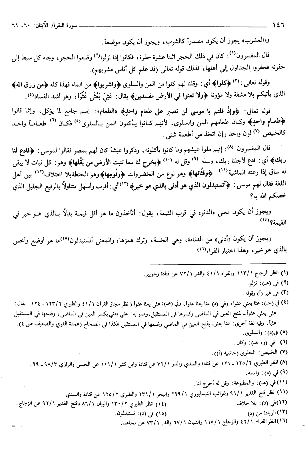 قال المفسرون: إنهم ملوا عيشهم وما كانوا يأكلونه، وذكروا عيشا كان لهم بمصر، فقالوا لموسى: فادع لنا ربك أي: ادع لأجلنا ربك، وسله وقل له: {يُخْرِجْ لَنَا مِمَّا تُنْبِتُ الأَرْضُ مِنْ بَقْلِهَا} [البقرة: 61] وهو كل نبات لا يبقى له ساق إذا رعته الماشية، وقثائها وهو نوع من الخضروات، وفومها وهو الحنطة بلا اختلاف بين أهل اللغة، فقال لهم موسى: {أَتَسْتَبْدِلُونَ الَّذِي هُوَ أَدْنَى بِالَّذِي هُوَ خَيْرٌ} [البقرة: 61] أي: أقرب وأسهل متناولا بالرفيع الجليل الذي خصكم الله به؟ ! ويجوز أن يكون معنى الدنو فِي قرب القيمة، يقول: أتأخذون ما هو أقل قيمة بدلا بالذي هو خير فِي القيمة؟ ! ويجوز أن يكون أدنى من الدناءة، وهي الخسة، وترك همزها، والمعنى: أتستبدلون ما هو أوضع وأخس بالذي هو خير؟ ! وهذا اختيار الفراء.
