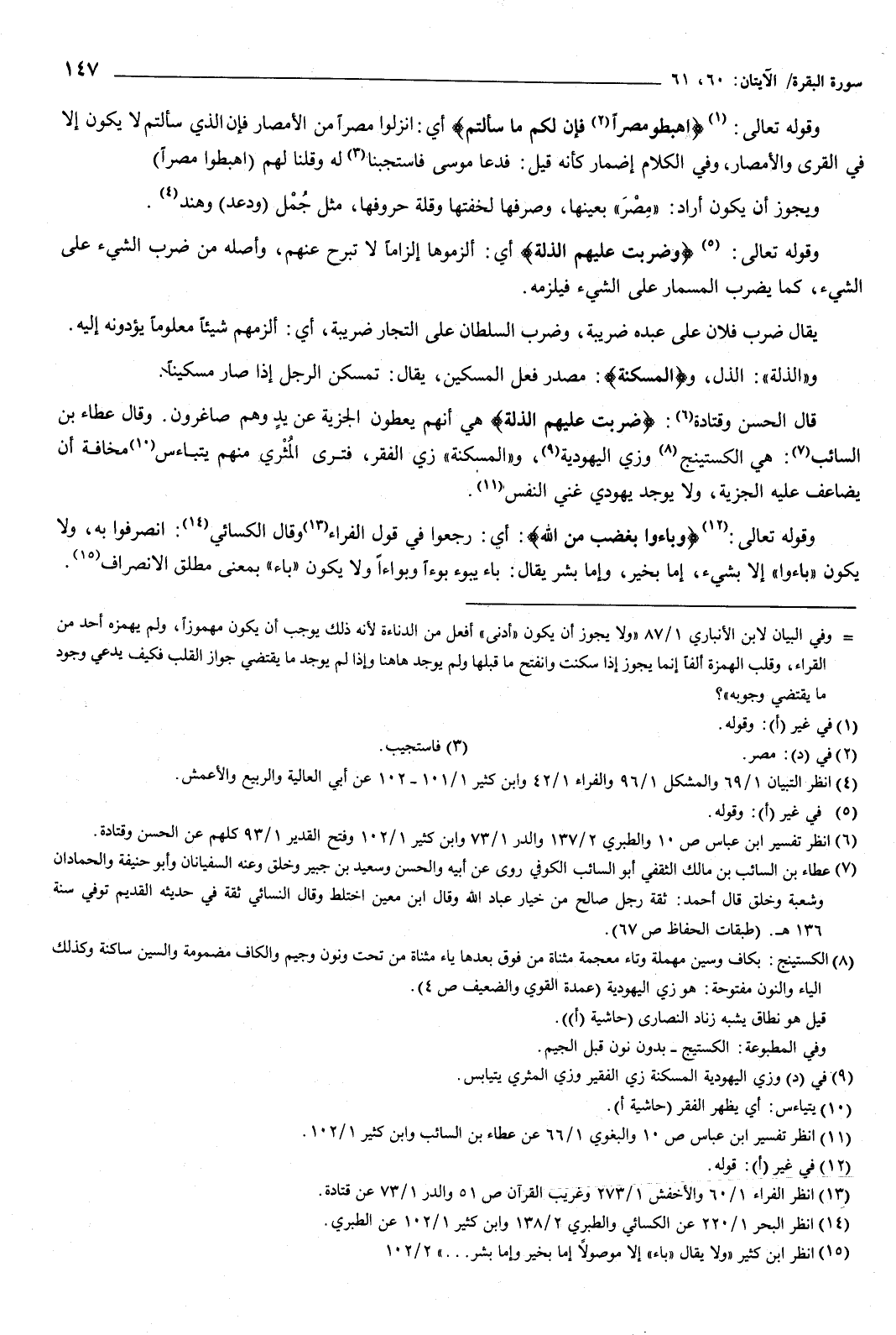 وقوله تعالى: {اهْبِطُوا مِصْرًا فَإِنَّ لَكُمْ مَا سَأَلْتُمْ} [البقرة: 61] أي: انزلوا مصرا من الأمصار، فإن الذي سألتم لا يكون إلا فِي القرى والأمصار، وفي الكلام إضمار كأنه قيل: فدعا موسى فاستجبنا له وقلنا لهم: اهبطوا مصرا، ويجوز أن يكون أراد: مصر بعينها، وصرفها لخفتها وقلة حروفها، مثل: جمل، ودعد، وهند.