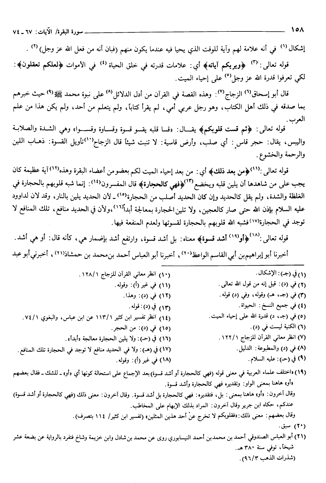 وإن كان الحديد أصلب من الحجارة، لأن الحديد يلين بالنار، وقد لان لداود عليه السلام بإذن الله حتى صار كالعجين، ولا تلين الحجارة بمعالجة أبدا، ولأن فِي الحديد منافع، تلك المنافع لا توجد فِي الحجارة، فشبه الله قلوبهم بالحجارة لقسوتها، ولعدم المنفعة فِيها.