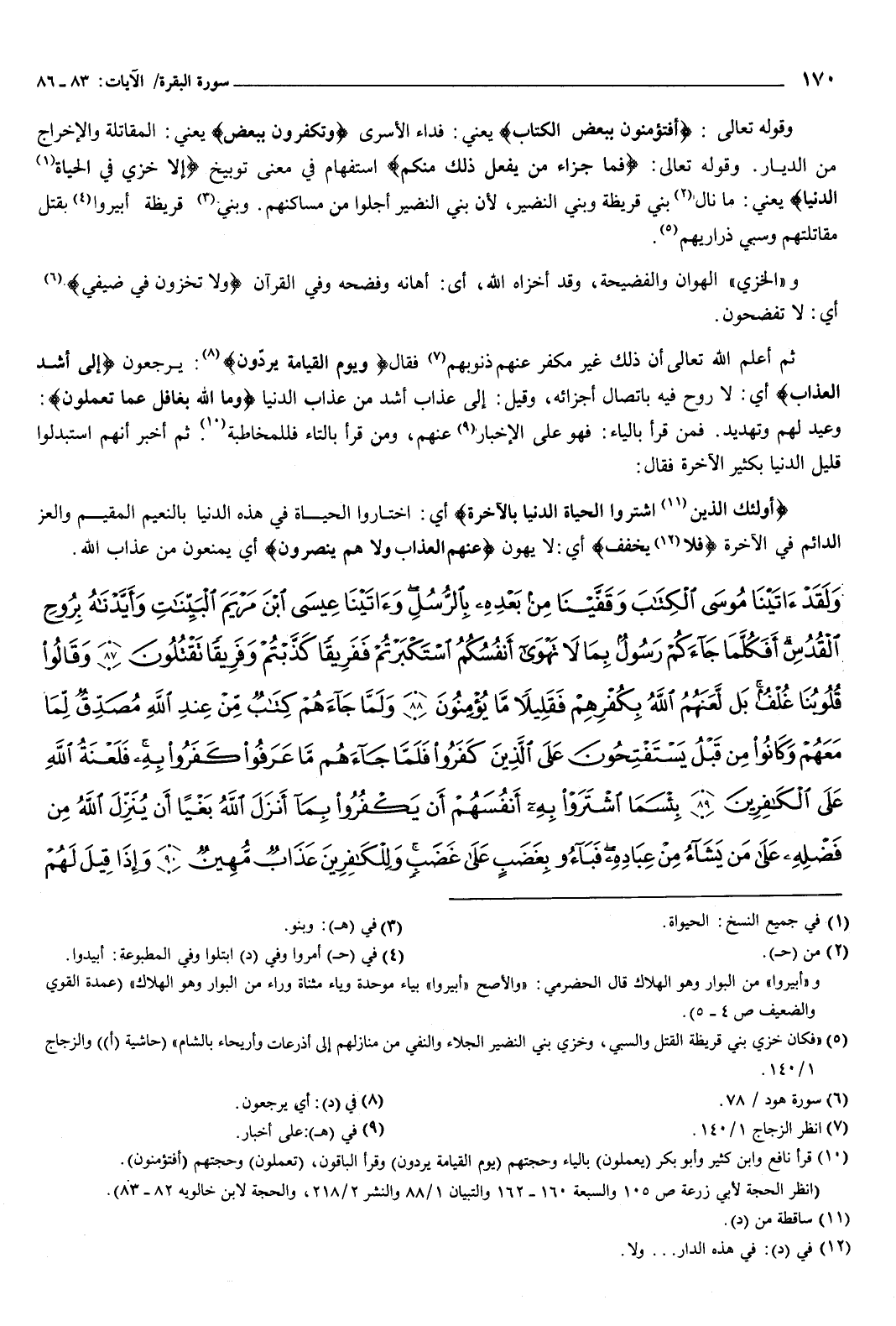 {وَلَقَدْ آتَيْنَا مُوسَى الْكِتَابَ وَقَفَّيْنَا مِنْ بَعْدِهِ بِالرُّسُلِ وَآتَيْنَا عِيسَى ابْنَ مَرْيَمَ الْبَيِّنَاتِ وَأَيَّدْنَاهُ بِرُوحِ الْقُدُسِ أَفَكُلَّمَا جَاءَكُمْ رَسُولٌ بِمَا لا تَهْوَى أَنْفُسُكُمُ اسْتَكْبَرْتُمْ فَفَرِيقًا كَذَّبْتُمْ وَفَرِيقًا تَقْتُلُونَ {87} وَقَالُوا قُلُوبُنَا غُلْفٌ بَلْ لَعَنَهُمُ اللَّهُ بِكُفْرِهِمْ فَقَلِيلا مَا يُؤْمِنُونَ {88} وَلَمَّا جَاءَهُمْ كِتَابٌ مِنْ عِنْدِ اللَّهِ مُصَدِّقٌ لِمَا مَعَهُمْ وَكَانُوا مِنْ قَبْلُ يَسْتَفْتِحُونَ عَلَى الَّذِينَ كَفَرُوا فَلَمَّا جَاءَهُمْ مَا عَرَفُوا كَفَرُوا بِهِ فَلَعْنَةُ اللَّهِ عَلَى الْكَافِرِينَ {89} بِئْسَمَا اشْتَرَوْا بِهِ أَنْفُسَهُمْ أَنْ يَكْفُرُوا بِمَا أَنْزَلَ اللَّهُ بَغْيًا أَنْ يُنَزِّلَ اللَّهُ مِنْ فَضْلِهِ عَلَى مَنْ يَشَاءُ مِنْ عِبَادِهِ فَبَاءُوا بِغَضَبٍ عَلَى غَضَبٍ وَلِلْكَافِرِينَ عَذَابٌ مُهِينٌ {90} وَإِذَا قِيلَ لَهُمْ