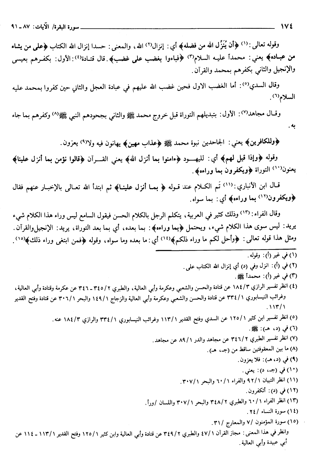 وقوله: وإذا قيل لهم أي: لليهود، آمنوا بما أنزل الله يعني القرآن، {قَالُوا نُؤْمِنُ بِمَا أُنْزِلَ عَلَيْنَا} [البقرة: 91] يعنون التوراة، {وَيَكْفُرُونَ بِمَا وَرَاءَهُ} [البقرة: 91] قال ابن الأنباري: تم الكلام عند قوله: بما أنزل علينا، ثم ابتدأ الله تعالى بالإخبار عنهم فقال: ويكفرون بما وراءه أي: بما سواه.