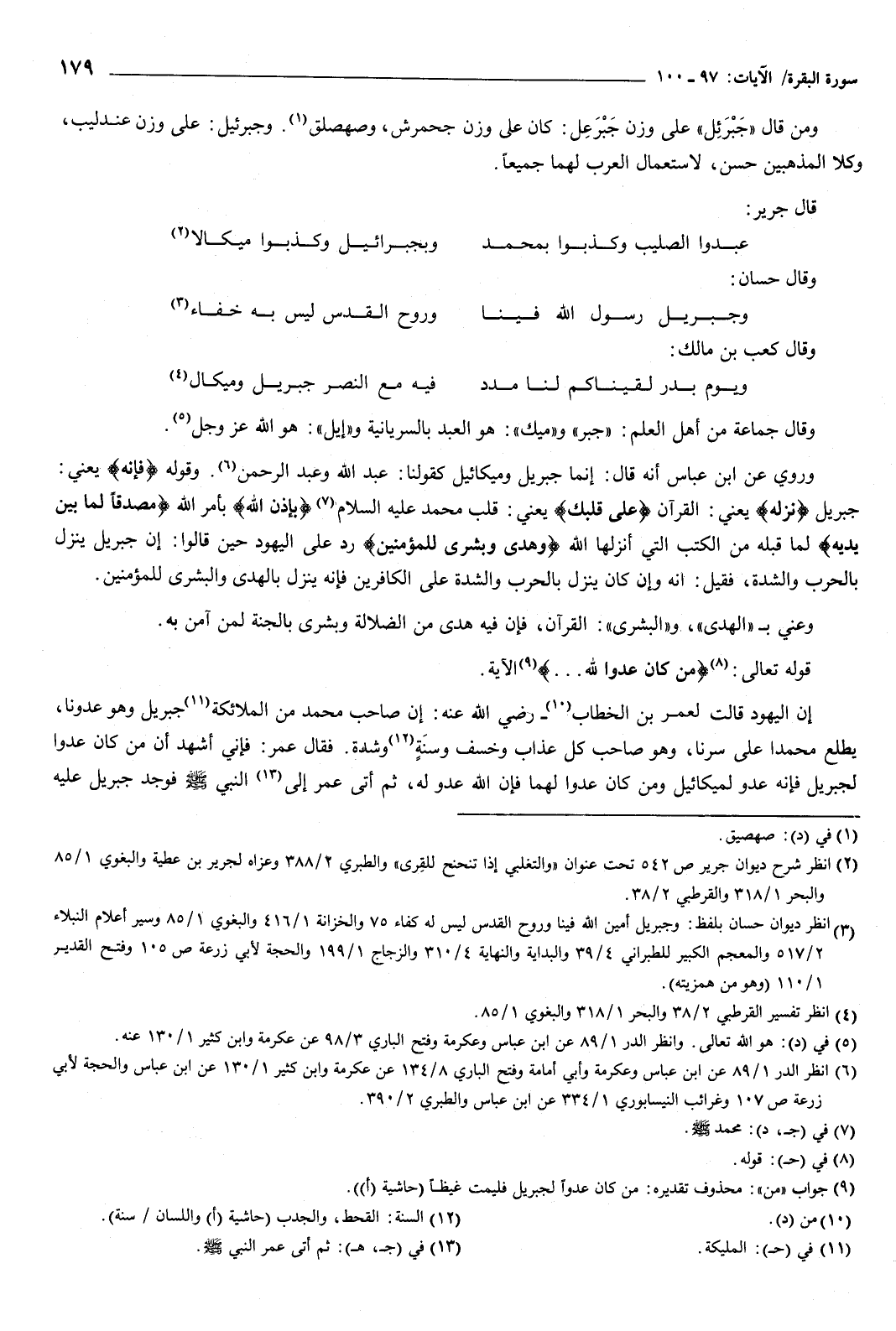 وقوله: فإنه يعني جبريل، نزله يعني القرآن، {عَلَى قَلْبِكَ} [البقرة: 97] يعني قلب محمد عليه السلام، بإذن الله بأمر الله، {مُصَدِّقًا لِمَا بَيْنَ يَدَيْهِ} [البقرة: 97] لما قبله من الكتب التي أنزلها الله، {وَهُدًى وَبُشْرَى لِلْمُؤْمِنِينَ} [البقرة: 97] رد على اليهود حين قالوا: إن جبريل ينزل بالحرب والشدة.
