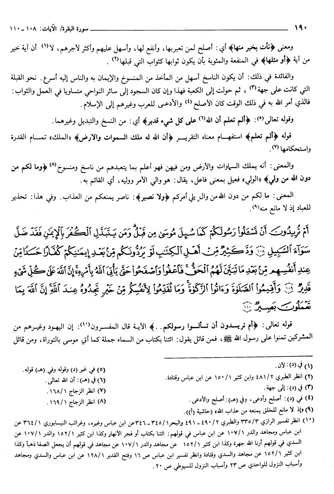 {أَمْ تُرِيدُونَ أَنْ تَسْأَلُوا رَسُولَكُمْ كَمَا سُئِلَ مُوسَى مِنْ قَبْلُ وَمَنْ يَتَبَدَّلِ الْكُفْرَ بِالإِيمَانِ فَقَدْ ضَلَّ سَوَاءَ السَّبِيلِ {108} وَدَّ كَثِيرٌ مِنْ أَهْلِ الْكِتَابِ لَوْ يَرُدُّونَكُمْ مِنْ بَعْدِ إِيمَانِكُمْ كُفَّارًا حَسَدًا مِنْ عِنْدِ أَنْفُسِهِمْ مِنْ بَعْدِ مَا تَبَيَّنَ لَهُمُ الْحَقُّ فَاعْفُوا وَاصْفَحُوا حَتَّى يَأْتِيَ اللَّهُ بِأَمْرِهِ إِنَّ اللَّهَ عَلَى كُلِّ شَيْءٍ قَدِيرٌ {109} وَأَقِيمُوا الصَّلاةَ وَآتُوا الزَّكَاةَ وَمَا تُقَدِّمُوا لأَنْفُسِكُمْ مِنْ خَيْرٍ تَجِدُوهُ عِنْدَ اللَّهِ إِنَّ اللَّهَ بِمَا تَعْمَلُونَ بَصِيرٌ {110} } [البقرة: 108-110] قوله تعالى: {أَمْ تُرِيدُونَ أَنْ تَسْأَلُوا رَسُولَكُمْ} [البقرة: 108] الآية، قال المفسرون: إن اليهود وغيرهم من المشركين تمنوا على رسول الله صَلَّى اللهُ عَلَيْهِ وَسَلَّمَ، فمن قائل يقول: ائتنا بكتاب من السماء جملة كما أتي موسى بالتوراة، ومن قائل