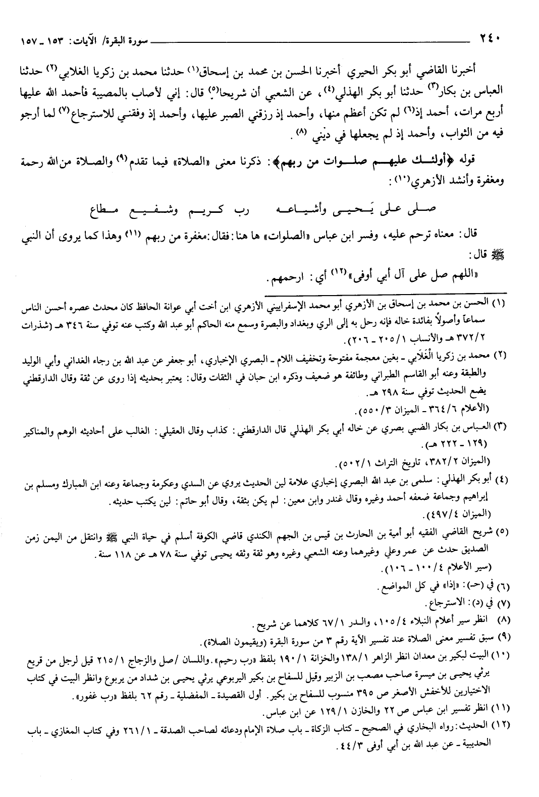 وفسر ابن عباس الصلوات ههنا فقال: مغفرة من ربهم، وهذا كما يروى، أن النبي صَلَّى اللهُ عَلَيْهِ وَسَلَّمَ، قال: «اللهم صل على آل أبي أوفى» .