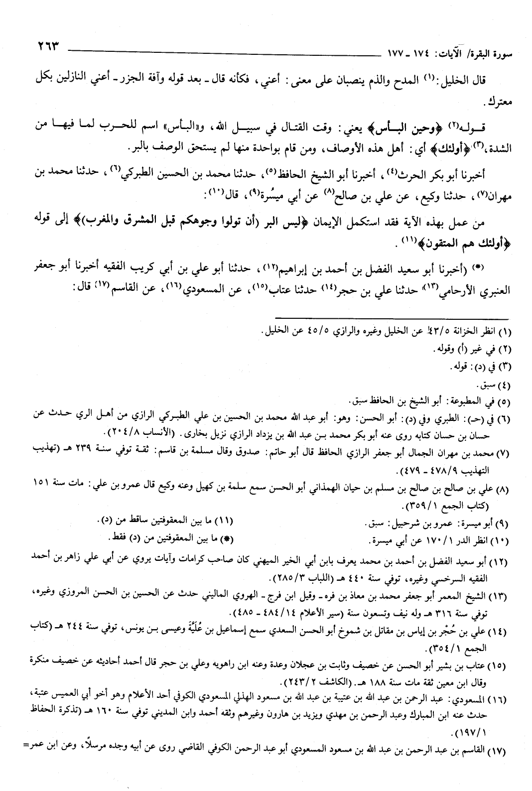 أخبرنا أبو بكر بن الحارث، أخبرنا أبو الشيخ الحافظ، حدثنا محمد بن الحسين الطبركي، حدثنا محمد بن مهران، حدثنا وكيع، عن علي بن صالح، عن أبي ميسرة، قال: من عمل بهذه الآية فقد استكمل الإيمان {لَيْسَ الْبِرَّ أَنْ تُوَلُّوا وُجُوهَكُمْ قِبَلَ الْمَشْرِقِ وَالْمَغْرِبِ} [البقرة: 177] إلى قوله: {أُولَئِكَ هُمُ الْمُتَّقُونَ} [الزمر: 33] .