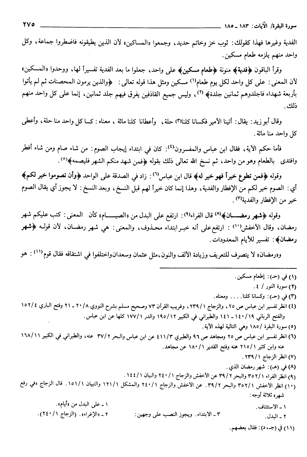 وقوله: {فَمَنْ تَطَوَّعَ خَيْرًا فَهُوَ خَيْرٌ لَهُ} [البقرة: 184] قال ابن عباس: زاد فِي الصدقة على الواحد، {وَأَنْ تَصُومُوا خَيْرٌ لَكُمْ} [البقرة: 184] أي: الصوم خير لكم من الإفطار والفدية، وهذا إنما كان خيرا لهم قبل النسخ، وبعد النسخ لا يجوز، أي يقال: الصوم خير من الإفطار والفدية.