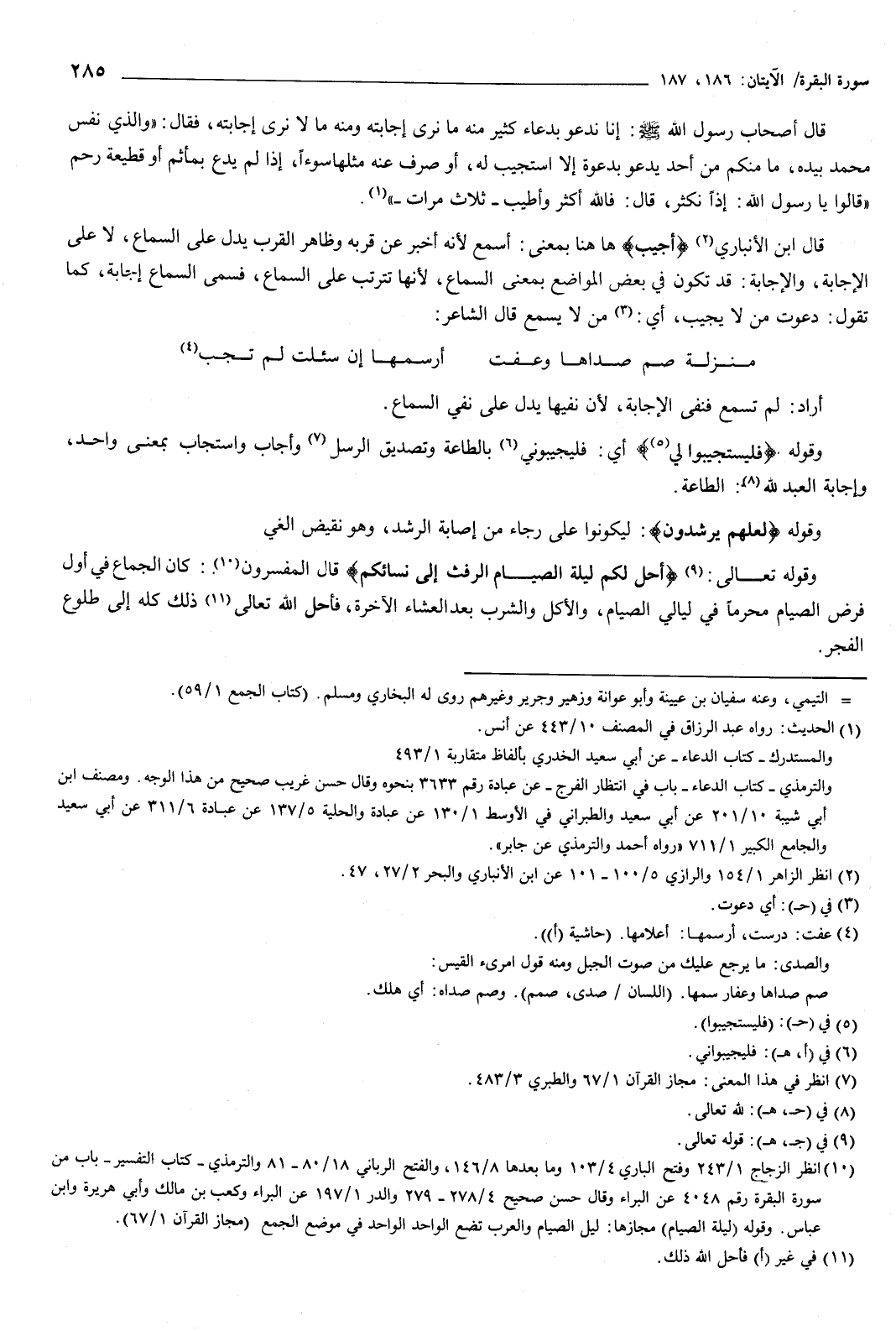 قال ابن الأنباري: أجيب ههنا بمعنى: أسمع، لأنه أخبر عن قربه، وظاهر القرب يدل على السماع، لا على الإجابة، والإجابة قد تكون فِي بعض المواضع بمعنى السماع، لأنها تترتب على السماع، فسمى السماع إجابة، كما تقول: دعوت من لا يجيب.