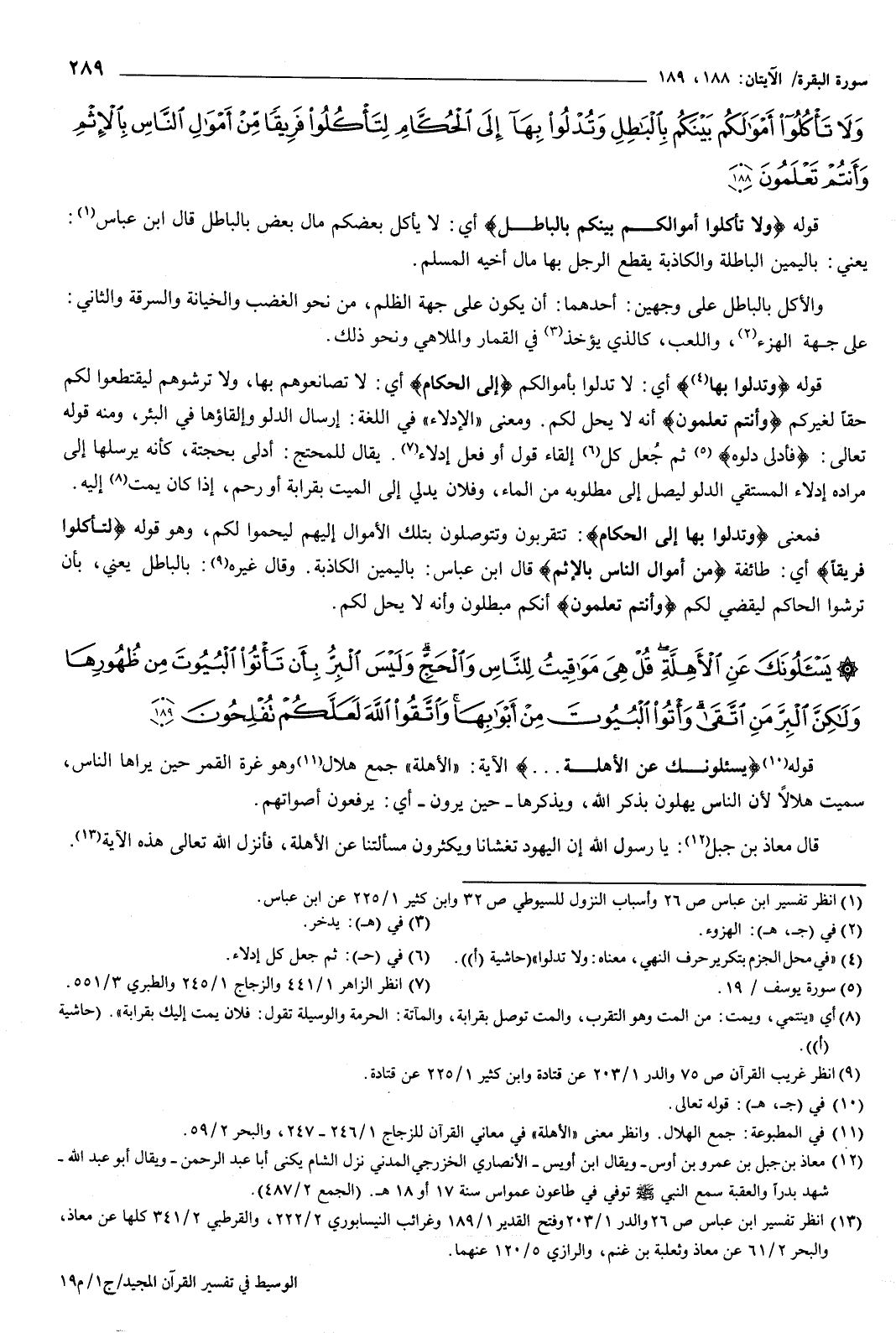 {وَلا تَأْكُلُوا أَمْوَالَكُمْ بَيْنَكُمْ بِالْبَاطِلِ وَتُدْلُوا بِهَا إِلَى الْحُكَّامِ لِتَأْكُلُوا فَرِيقًا مِنْ أَمْوَالِ النَّاسِ بِالإِثْمِ وَأَنْتُمْ تَعْلَمُونَ} [البقرة: 188] قوله: {وَلا تَأْكُلُوا أَمْوَالَكُمْ بَيْنَكُمْ بِالْبَاطِلِ} [البقرة: 188] أي: لا يأكل بعضكم مال بعض بالباطل، قال ابن عباس: يعني: باليمين الباطلة والكاذبة يقطع الرجل بها مال أخيه المسلم.