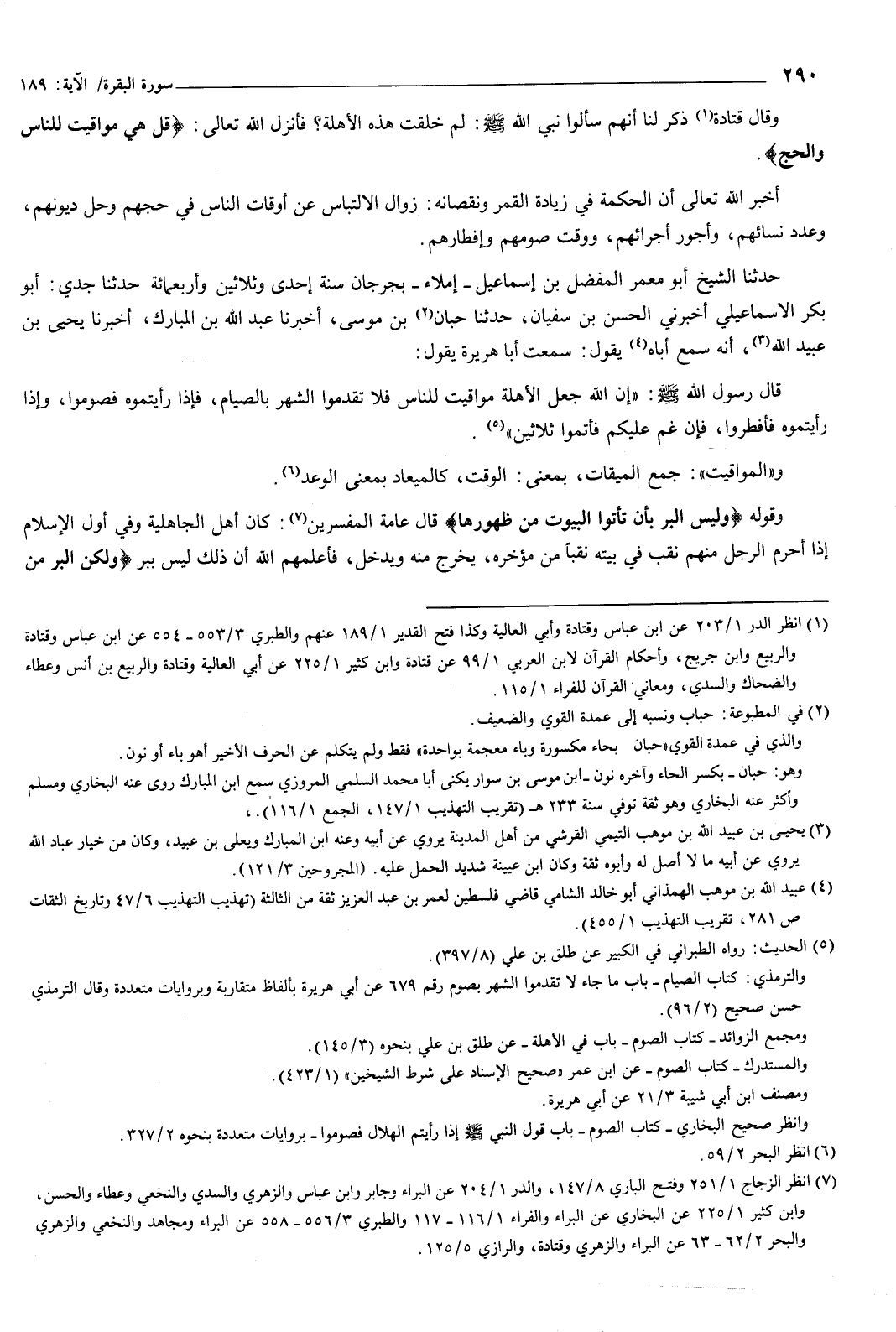 وقال قتادة: ذكر لنا أنهم سألوا نبي الله صَلَّى اللهُ عَلَيْهِ وَسَلَّمَ: لم خلقت هذه الأهلة؟ فأنزل الله تعالى: {قُلْ هِيَ مَوَاقِيتُ لِلنَّاسِ وَالْحَجِّ} [البقرة: 189] .