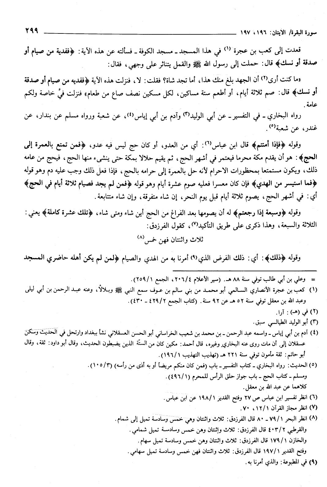 قَعَدْتُ إِلَى كَعْبِ بْنِ عُجْرَةَ فِي هَذَا الْمَسْجِدِ، مَسْجِدِ الْكُوفَةِ، فَسَأَلْتُهُ عَنْ هَذِهِ الآيَةِ: {فَفِدْيَةٌ مِنْ صِيَامٍ أَوْ صَدَقَةٍ أَوْ نُسُكٍ} [البقرة: 196] قَالَ: حُمِلْتُ إِلَى رَسُولِ اللَّهِ صَلَّى اللهُ عَلَيْهِ وَسَلَّمَ وَالْقَمْلُ يَتَنَاثَرُ عَلَى وَجْهِي، فَقَالَ: " مَا كُنْتُ أَرَى أَنَّ الْجَهْدَ بَلَغَ مِنْكَ هَذَا، أَمَا تَجِدُ شَاةً؟ فَقُلْتُ: لا، فَنَزَلَتْ هَذِهِ الآيَةُ: {فَفِدْيَةٌ مِنْ صِيَامٍ أَوْ صَدَقَةٍ أَوْ نُسُكٍ} [البقرة: 196] قَالَ: صُمْ ثَلاثَةَ أَيَّامٍ، أَوْ أَطْعِمْ سِتَّةَ مَسَاكِينَ، لِكُلِّ مِسْكِينٍ نِصْفُ صَاعٍ مِنْ طَعَامٍ " فَنَزَلَتْ فِيَّ خَاصَّةً وَلَكُمْ عَامَّةً، رَوَاهُ الْبُخَارِيُّ، فِي التَّفْسِيرِ، عَنْ أَبِي الْوَلِيدِ، وَآدَمُ بْنُ أَبِي إِيَاسٍ، عَنْ شُعْبَةَ، وَرَوَاهُ مُسْلِمٌ، عَنْ بُنْدَارٍ، عَنْ غُنْدَرٍ، عَنْ شُعْبَةَ