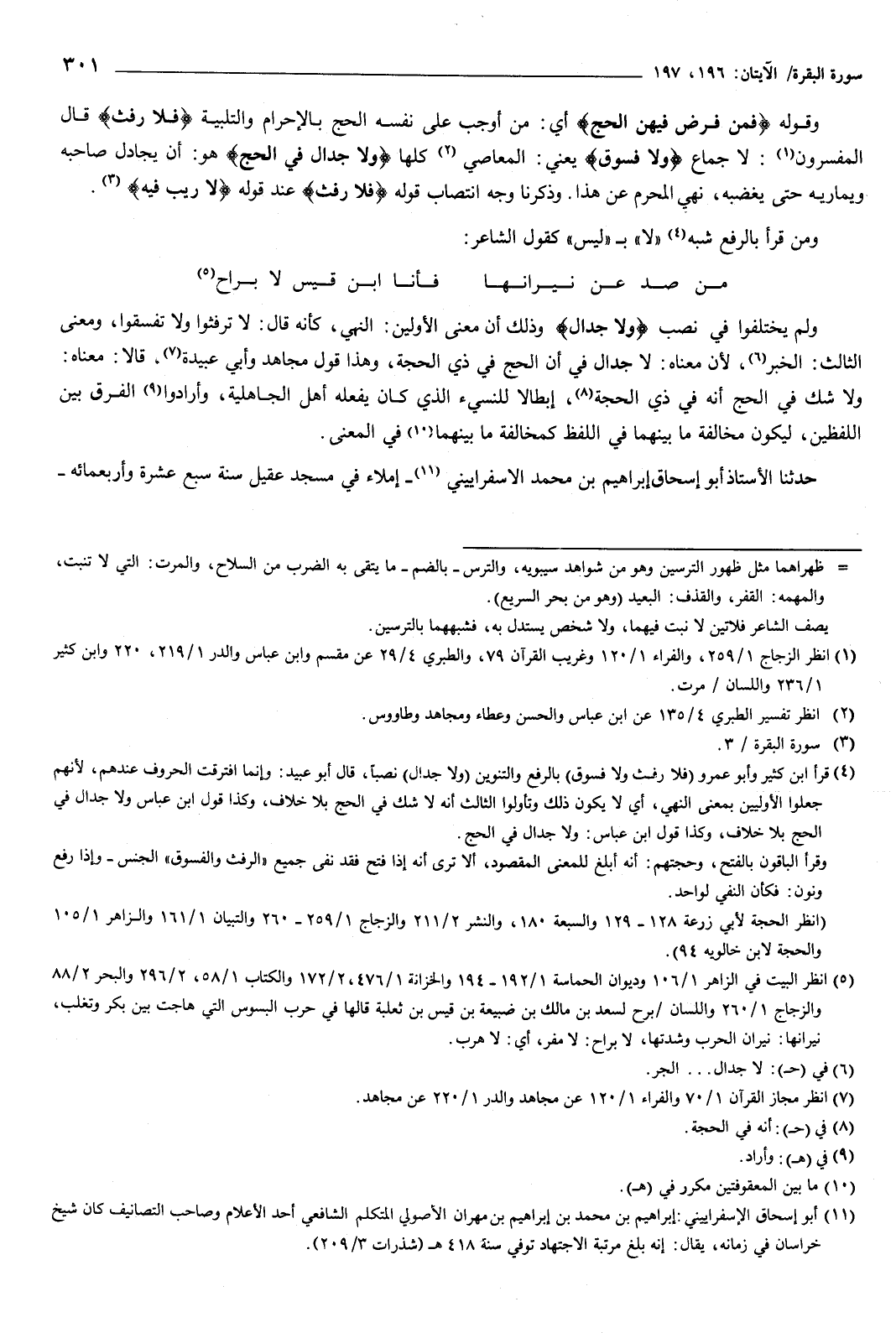 ومعنى الثالث: الخبر، لأن معناه: لا جدال في أن الحج في ذي الحجة، وهذا قول مجاهد، وأبي عبيدة، قالا: معناه: ولا شك في الحج أنه في ذي الحجة، إبطالا للنسيء الذي كان يفعله أهل الجاهلية، وأرادوا الفرق بين اللفظين، ليكون مخالفة ما بينهما في اللفظ كمخالفة ما بينهما في المعنى.