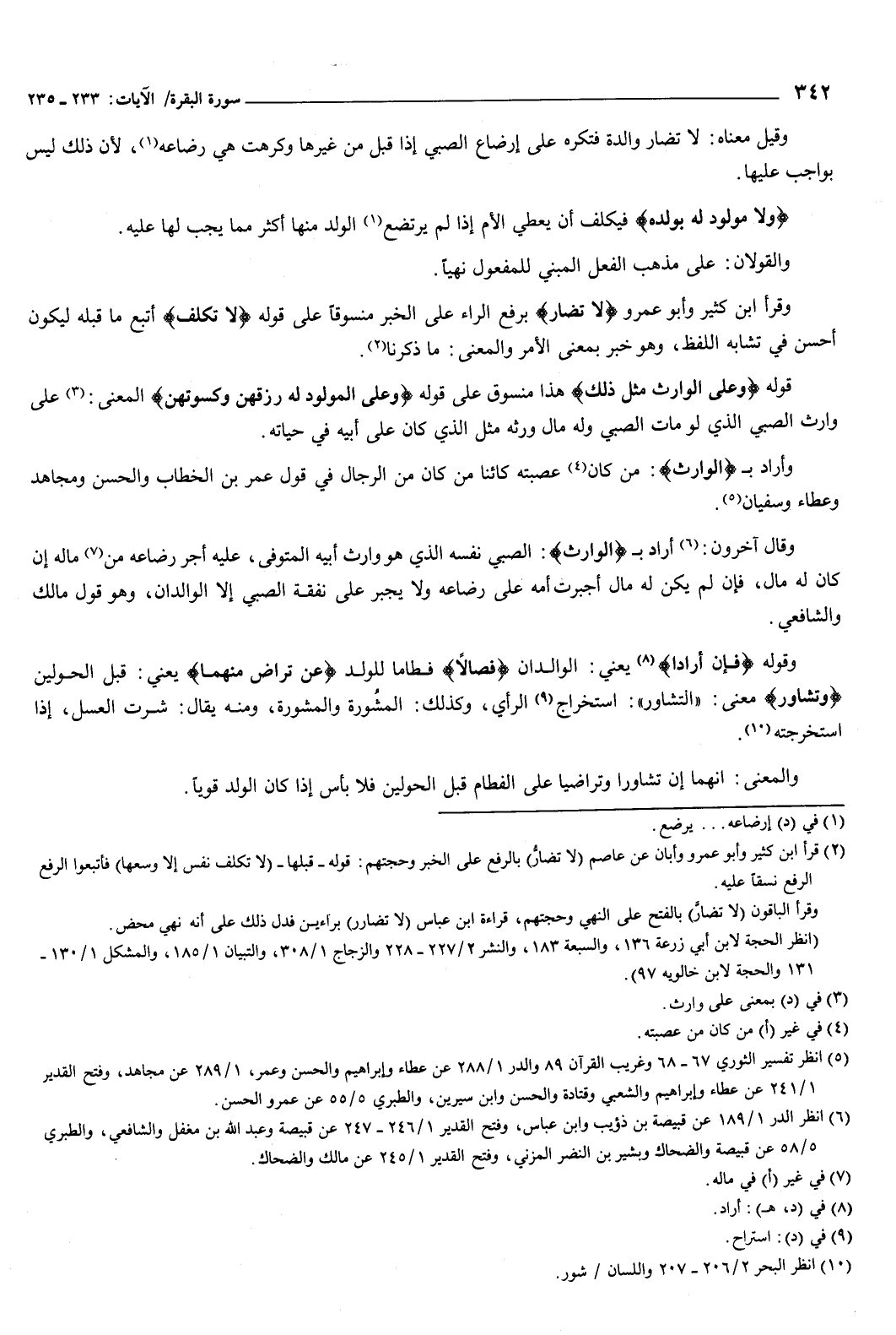 قوله {وَعَلَى الْوَارِثِ مِثْلُ ذَلِكَ} [البقرة: 233] هذا منسوق على قوله: {وَعَلَى الْمَوْلُودِ لَهُ رِزْقُهُنَّ وَكِسْوَتُهُنَّ} [البقرة: 233] المعنى: على وارث الصبي الذي لو مات الصبي وله مال ورثه مثل الذي كان على أبيه في حياته.
