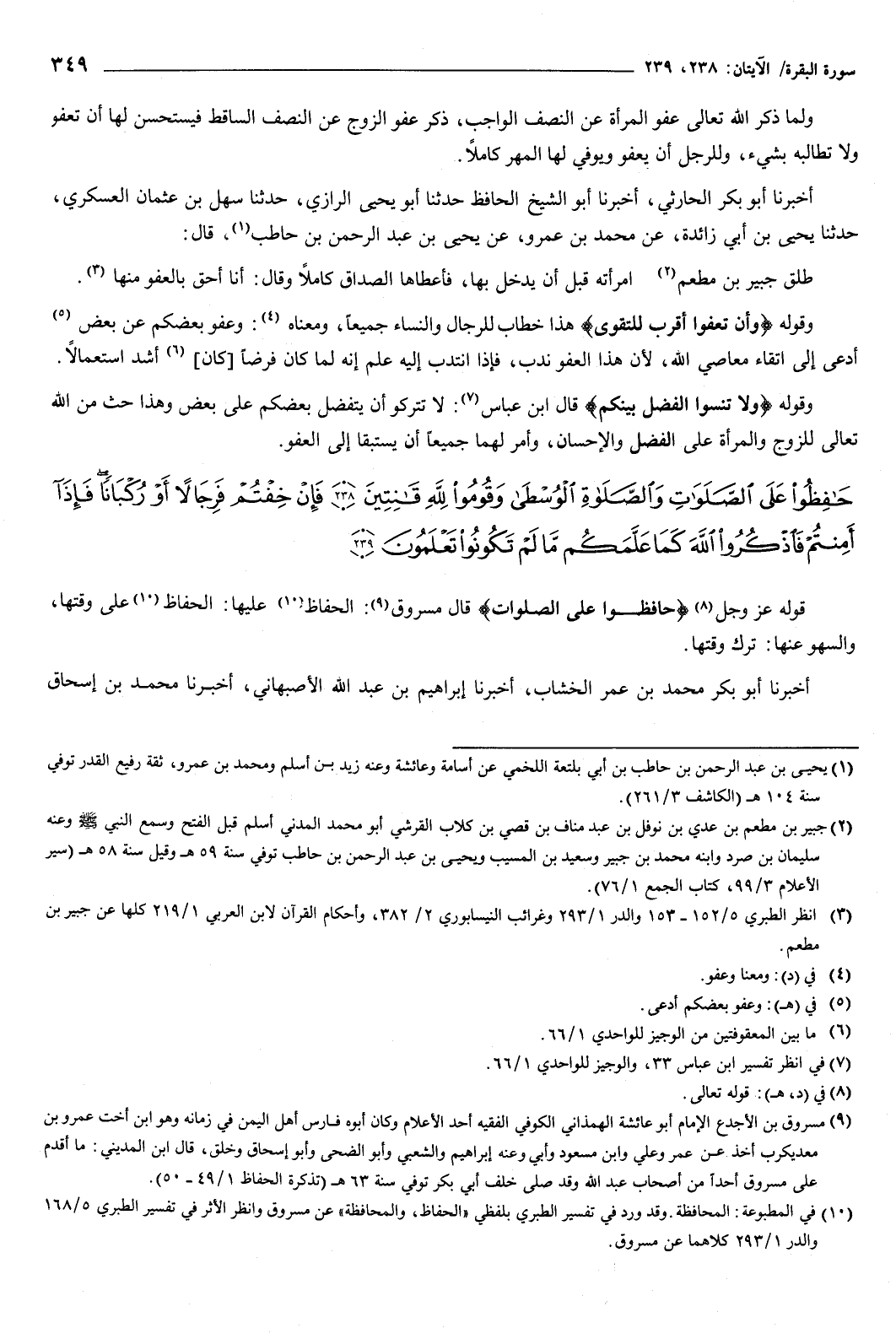 {حَافِظُوا عَلَى الصَّلَوَاتِ وَالصَّلاةِ الْوُسْطَى وَقُومُوا لِلَّهِ قَانِتِينَ {238} فَإِنْ خِفْتُمْ فَرِجَالا أَوْ رُكْبَانًا فَإِذَا أَمِنْتُمْ فَاذْكُرُوا اللَّهَ كَمَا عَلَّمَكُمْ مَا لَمْ تَكُونُوا تَعْلَمُونَ {239} } [البقرة: 238-239] قوله عز وجل: {حَافِظُوا عَلَى الصَّلَوَاتِ} [البقرة: 238] قال مسروق: الحفاظ عليها: الحفاظ على وقتها، والسهو عنها: ترك وقتها.