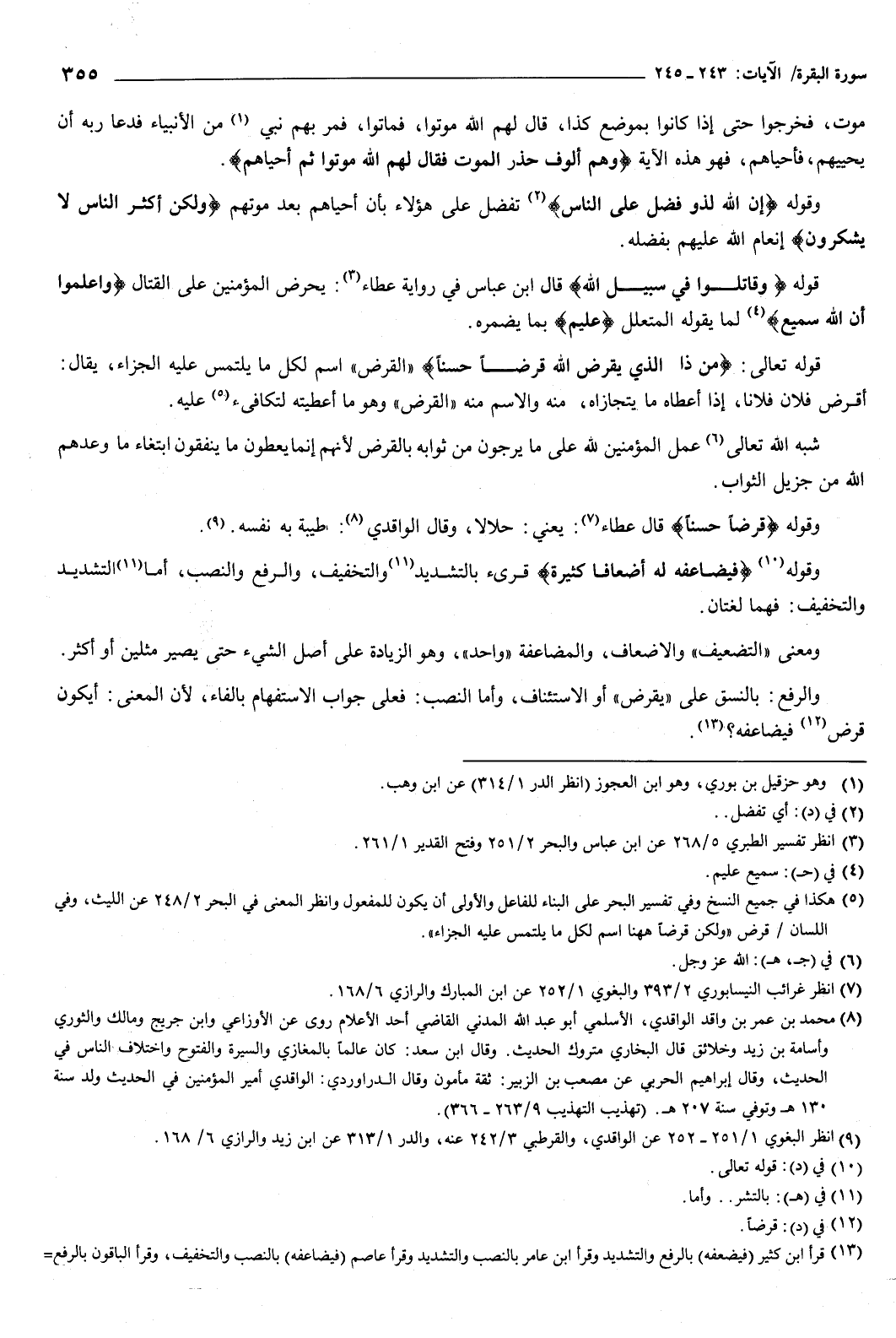 قوله: {وَقَاتِلُوا فِي سَبِيلِ اللَّهِ} [البقرة: 244] قال ابن عباس في رواية عطاء: يحرض المؤمنين على القتال، {وَاعْلَمُوا أَنَّ اللَّهَ سَمِيعٌ} [البقرة: 244] لما يقوله المتعلل، عليم بما يضمره.