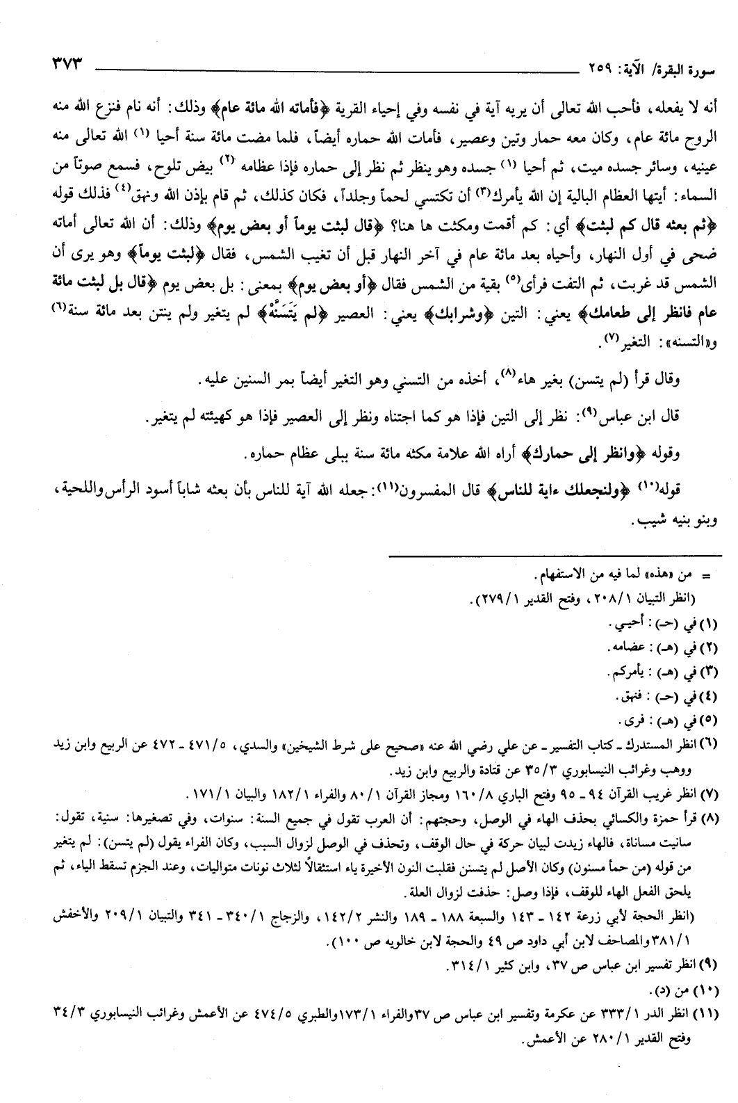 قوله: {وَلِنَجْعَلَكَ آيَةً لِلنَّاسِ} [البقرة: 259] قال المفسرون: جعله الله آية للناس بأن بعثه شابا أسود الرأس واللحية، وبنو بنيه شيب.