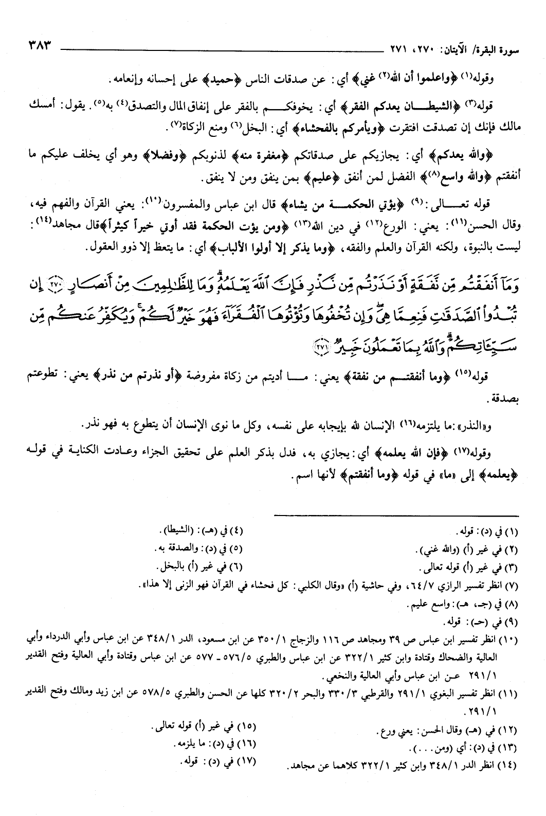 {وَمَا أَنْفَقْتُمْ مِنْ نَفَقَةٍ أَوْ نَذَرْتُمْ مِنْ نَذْرٍ فَإِنَّ اللَّهَ يَعْلَمُهُ وَمَا لِلظَّالِمِينَ مِنْ أَنْصَارٍ {270} إِنْ تُبْدُوا الصَّدَقَاتِ فَنِعِمَّا هِيَ وَإِنْ تُخْفُوهَا وَتُؤْتُوهَا الْفُقَرَاءَ فَهُوَ خَيْرٌ لَكُمْ وَيُكَفِّرُ عَنْكُمْ مِنْ سَيِّئَاتِكُمْ وَاللَّهُ بِمَا تَعْمَلُونَ خَبِيرٌ {271} } [البقرة: 270-271] قوله: {وَمَا أَنْفَقْتُمْ مِنْ نَفَقَةٍ} [البقرة: 270] يعني: ما أديتم من زكاة مفروضة، {أَوْ نَذَرْتُمْ مِنْ نَذْرٍ} [البقرة: 270] يعني: تطوعتم بصدقة، والنذر: ما يلتزمه الإنسان لله بإيجابه على نفسه، وكل ما نوى الإنسان أن يتطوع به فهو نذر.