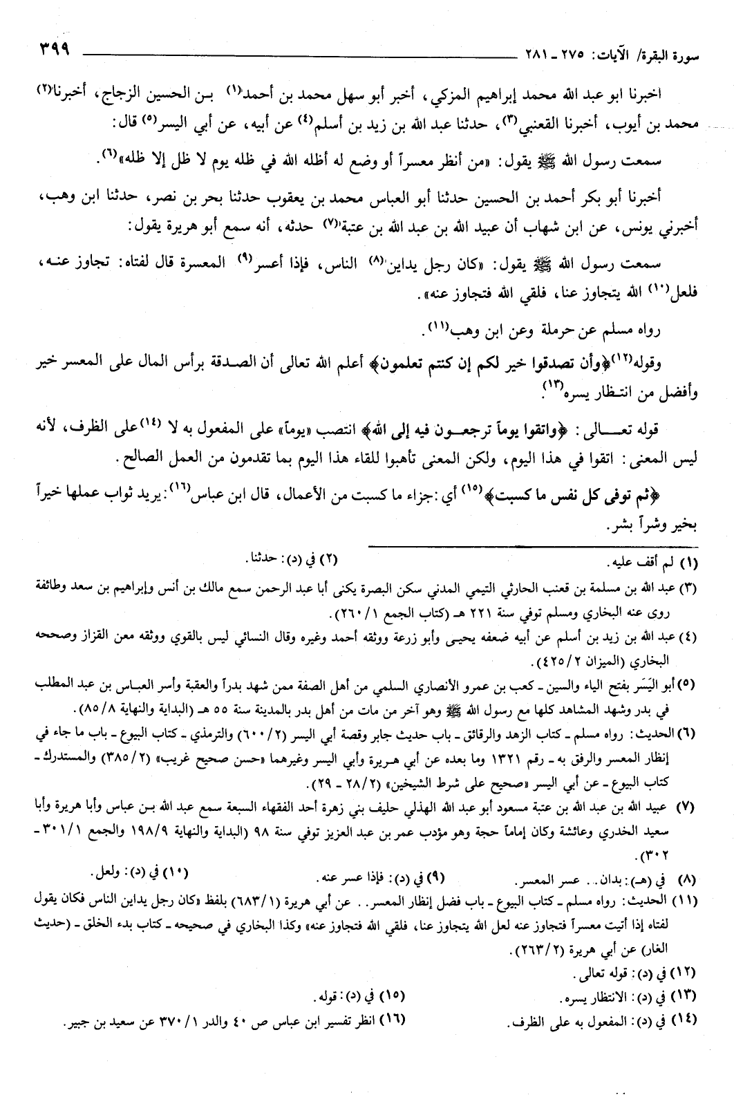 وقوله: {وَأَنْ تَصَدَّقُوا خَيْرٌ لَكُمْ إِنْ كُنْتُمْ تَعْلَمُونَ} [البقرة: 280] أعلم الله تعالى أن الصدقة برأس المال على المعسر خير وأفضل من انتظار يسره.