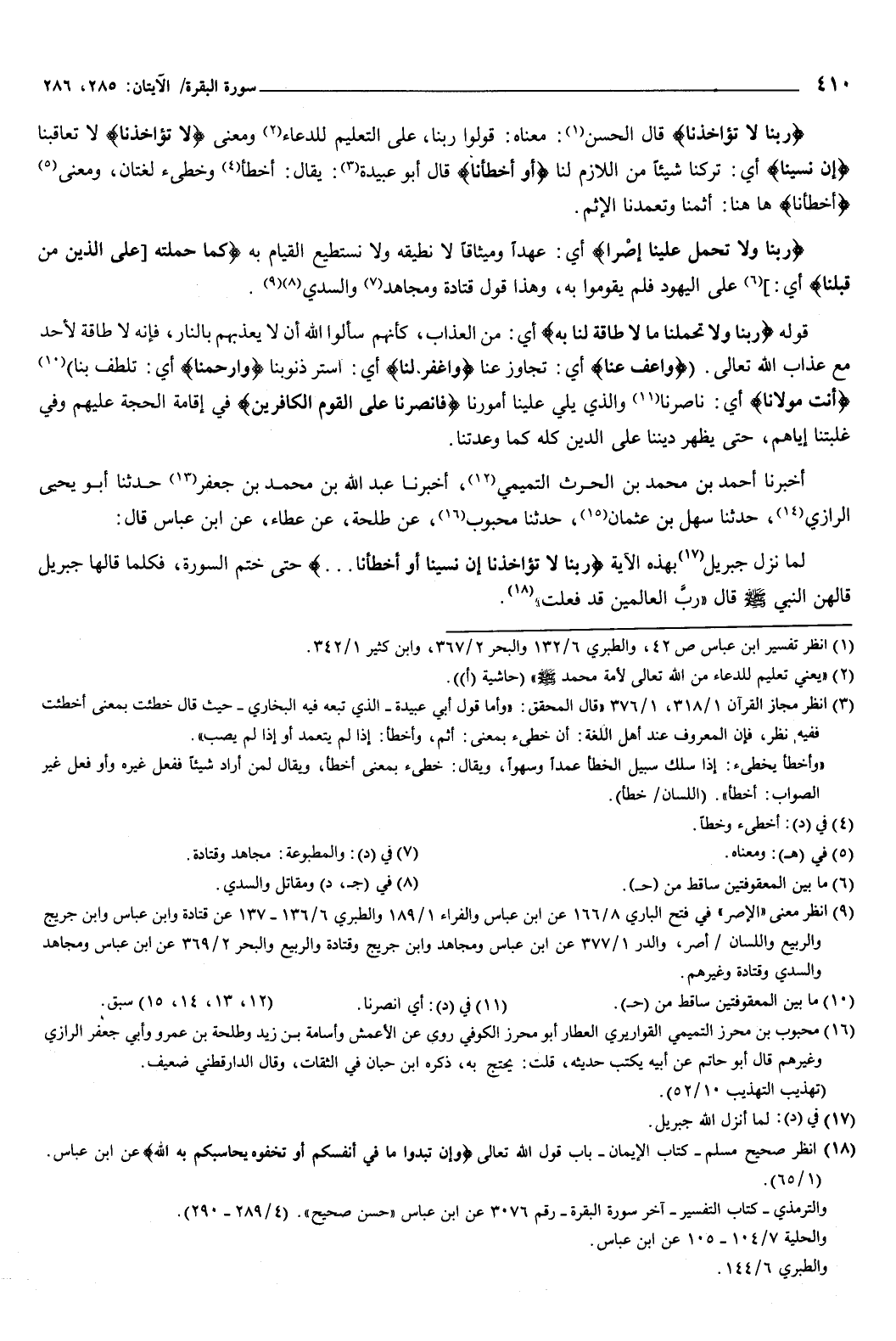 ومعنى {لا تُؤَاخِذْنَا} [البقرة: 286] لا تعاقبنا، إن نسينا أي: تركنا شيئا من اللازم لنا، {أَوْ أَخْطَأْنَا} [البقرة: 286] قال أبو عبيدة: يقال: أخطأ وخطئ لغتان.