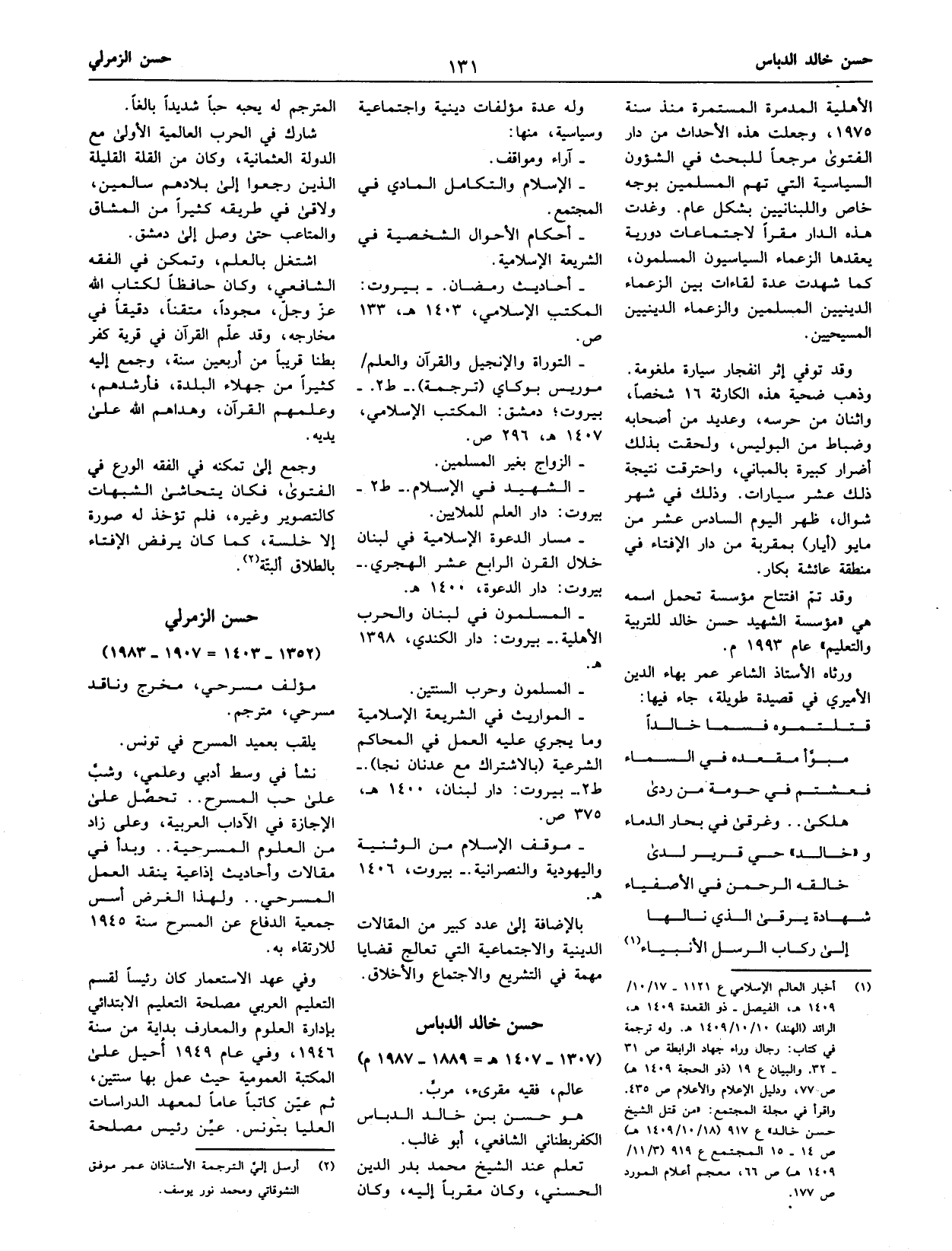 واقرأ في مجلة المجتمع: «من قتل الشيخ حسن خالد» ع 917 (18/ 10/ 1409 هـ) ص 14 - 15 المجتمع ع 919 (3/ 11/ 1409 هـ) ص 66، معجم أعلام المورد ص 177.