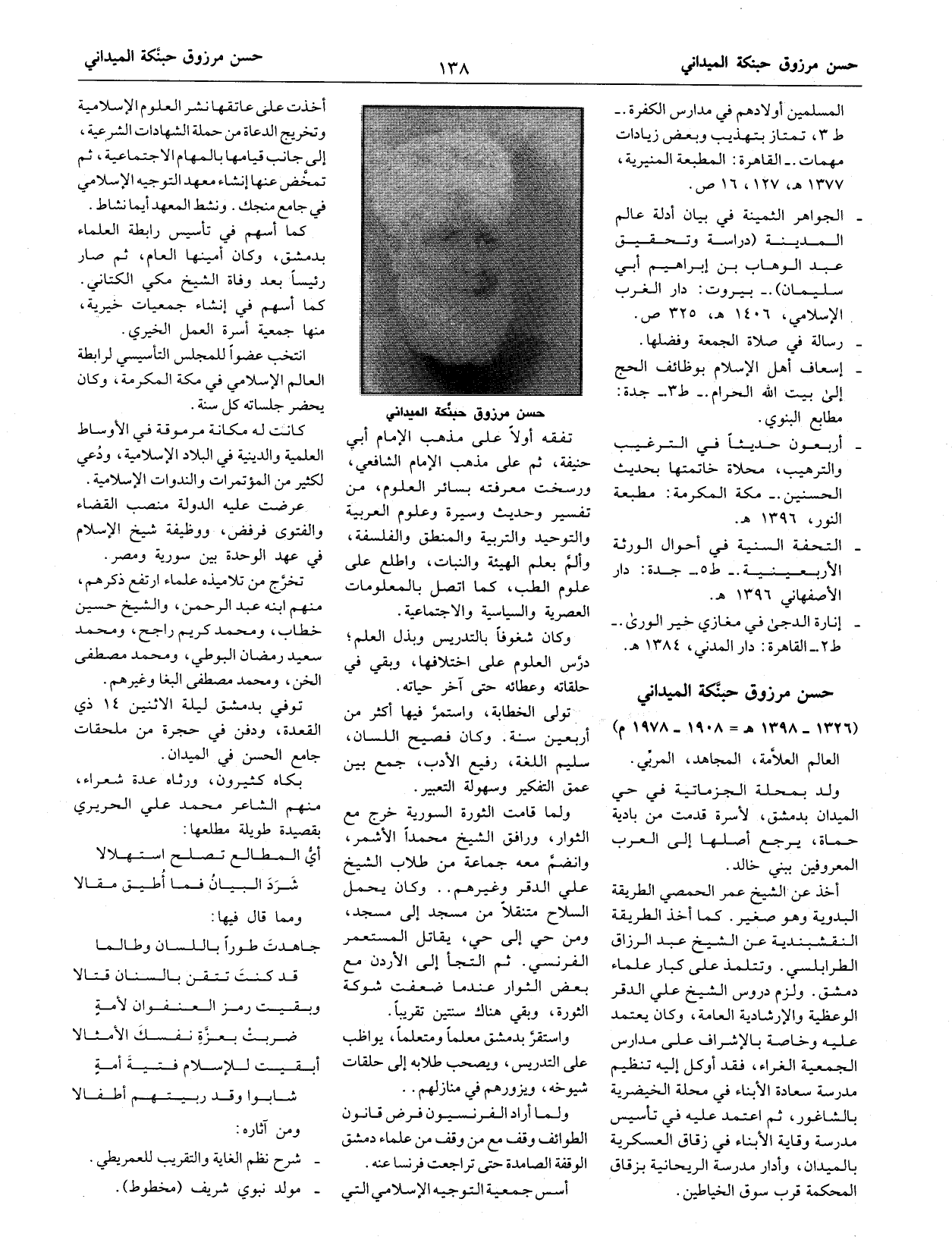 حسن مرزوق حبنّكة الميداني (1326 - 1398 هـ- 1908 - 1978 م)