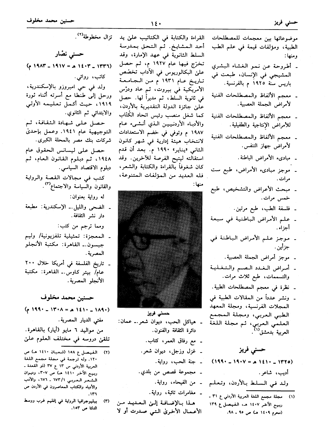 (¬2) الفيصل ع 158 (شعبان 1410 هـ) ص 120. وله ترجمة في مجلة مجمع اللغة العربية الأردني س 13 ع 37 (ذو القعدة- ربيع الآخر 1410 هـ) ص 307، وديوان الشعر العربي 1/ 673 - 676، والأدب والأدباء والكتاب المعاصرون في الأردن ص 136.