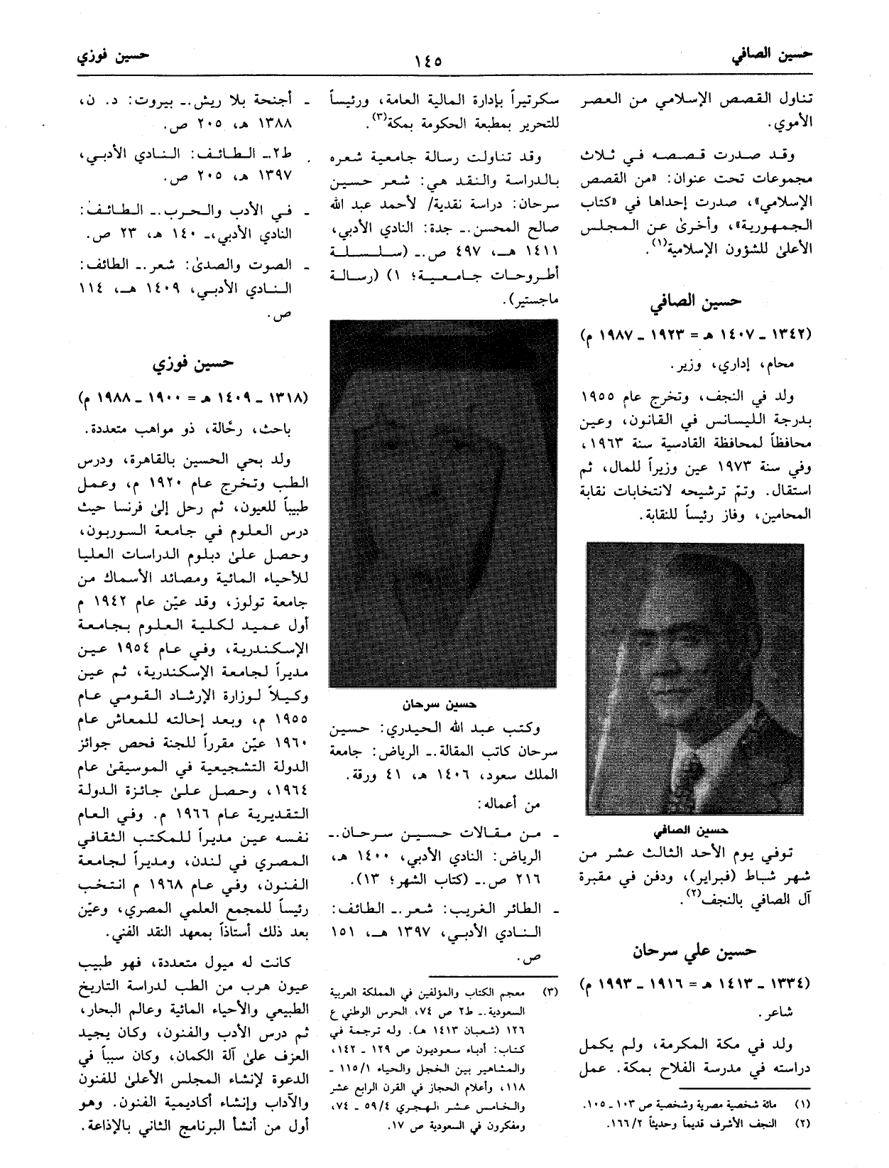وكتب عبد الله الحيدري: حسين سرحان كاتب المقالة.- الرياض: جامعة الملك سعود، 1406 هـ، 41 ورقة.