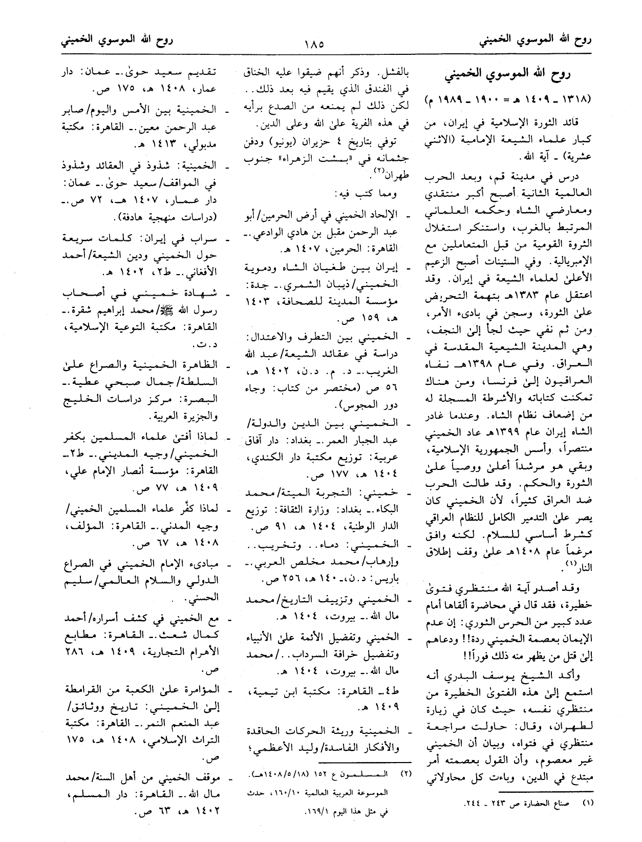 روح الله الموسوي الخميني (1318 - 1409 هـ- 1900 - 1989 م)
