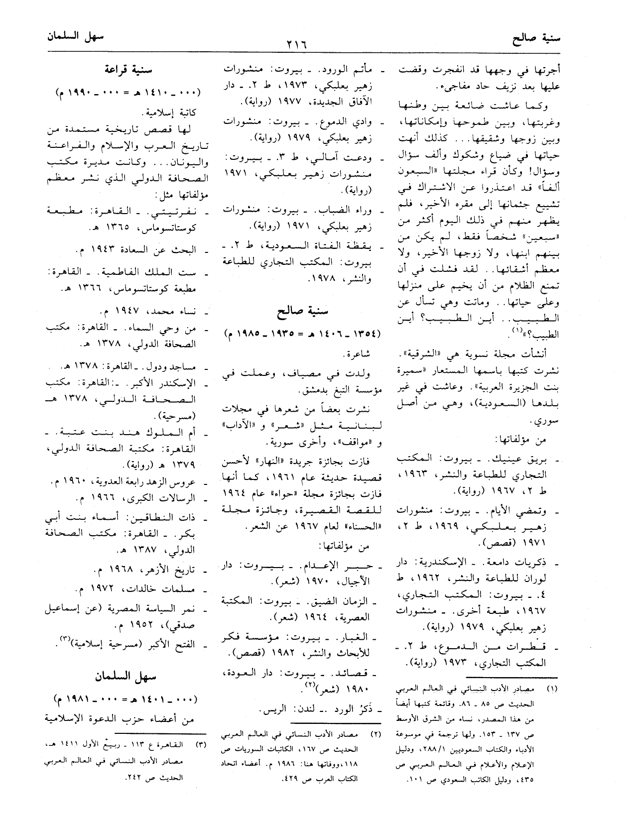 (¬3) القاهرة ع 113 - ربيع الأول 1411 هـ، مصادر الأدب النسائي في العالم العربي الحديث ص 242.