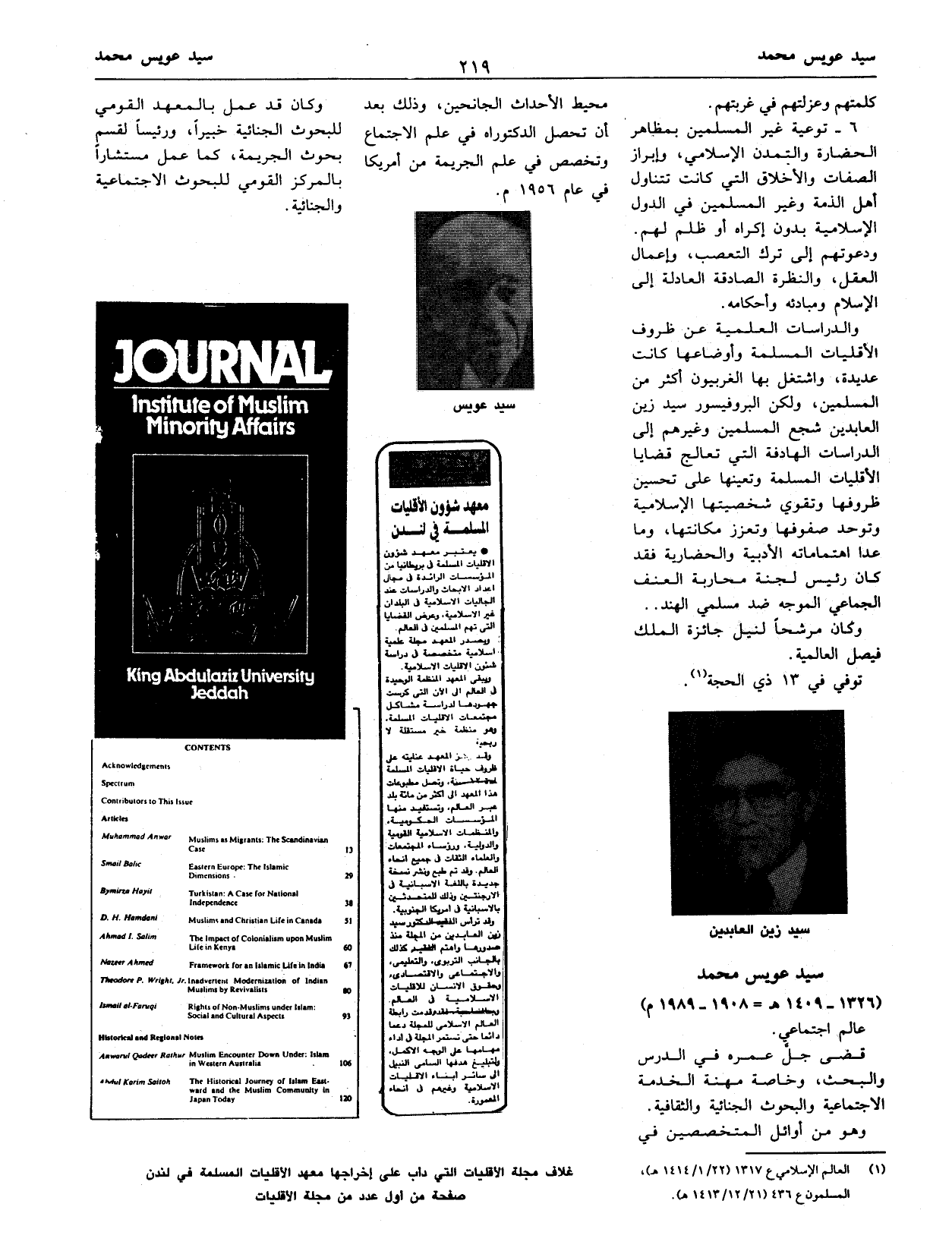 غلاف مجلة الأقليات التي دأب على إخراجها معهد الأقليات المسلمة في لندن صفحة من أول عدد من مجلة الأقليات