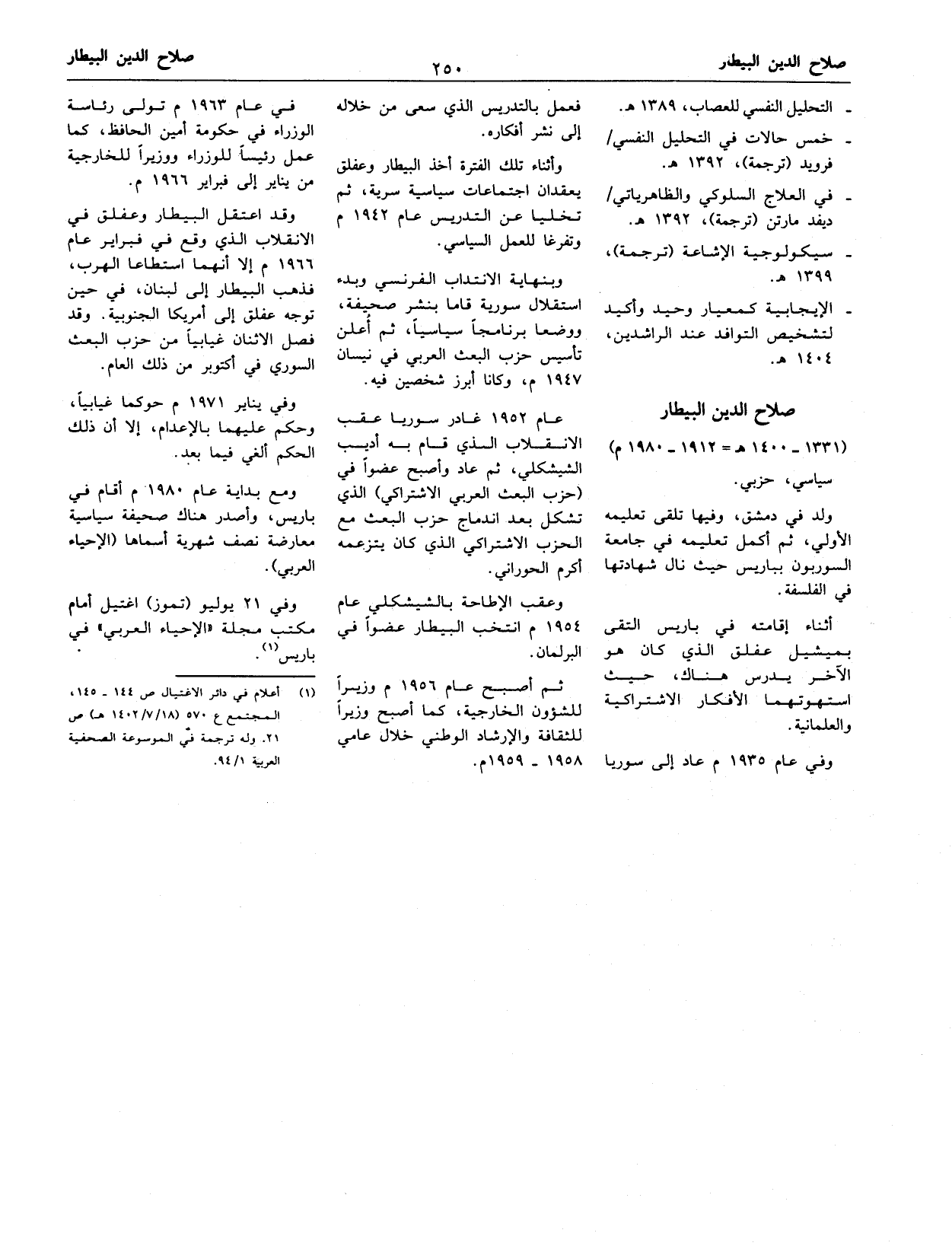 صلاح الدين البيطار (1331 - 1400 هـ- 1912 - 1980 م)