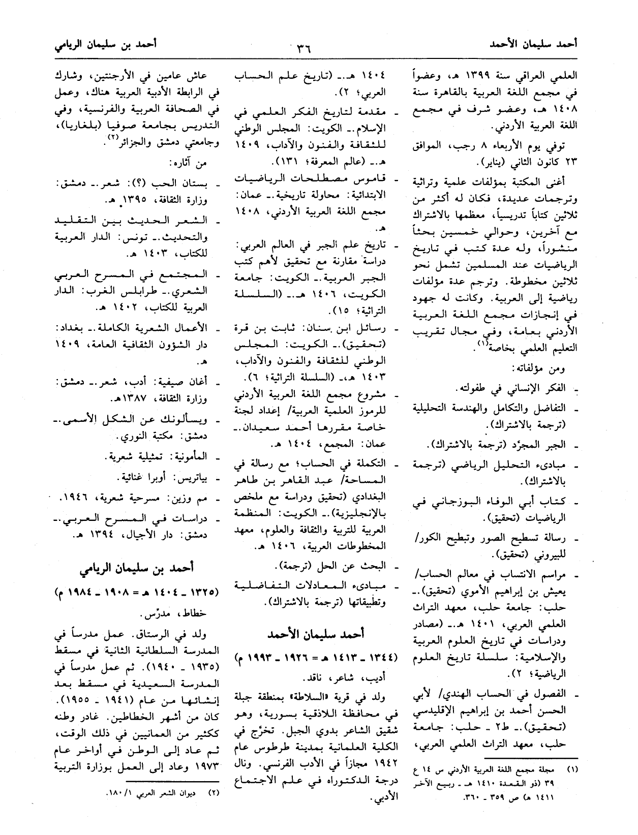 (¬1) مجلة مجمع اللغة العربية الأردني س 14 ع 39 (ذو القعدة 1410 هـ- ربيع الآخر 1411 هـ) ص 359 - 360.