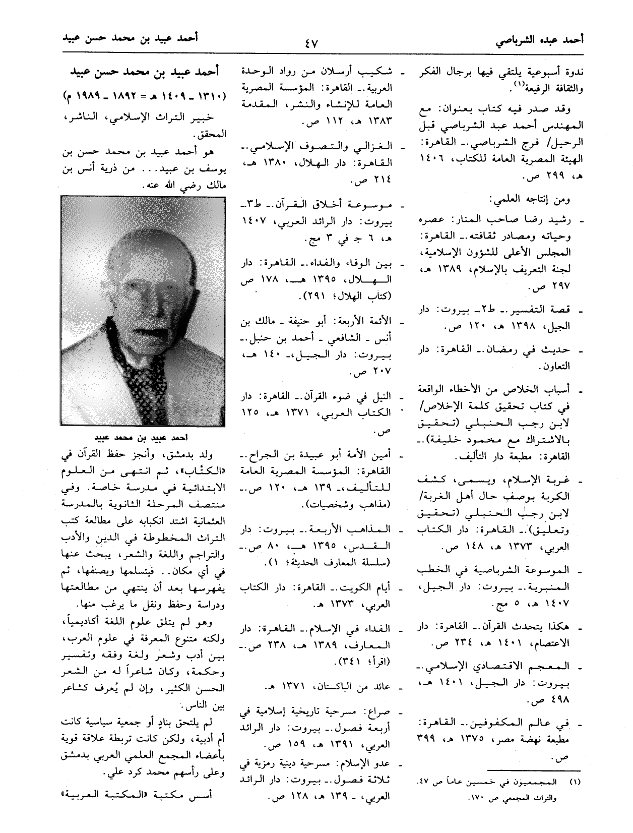 - المذاهب الأربعة.- بيروت: دار القدس، 1395 هـ، 80 ص.- (سلسلة المعارف الحديثة؛ 1).