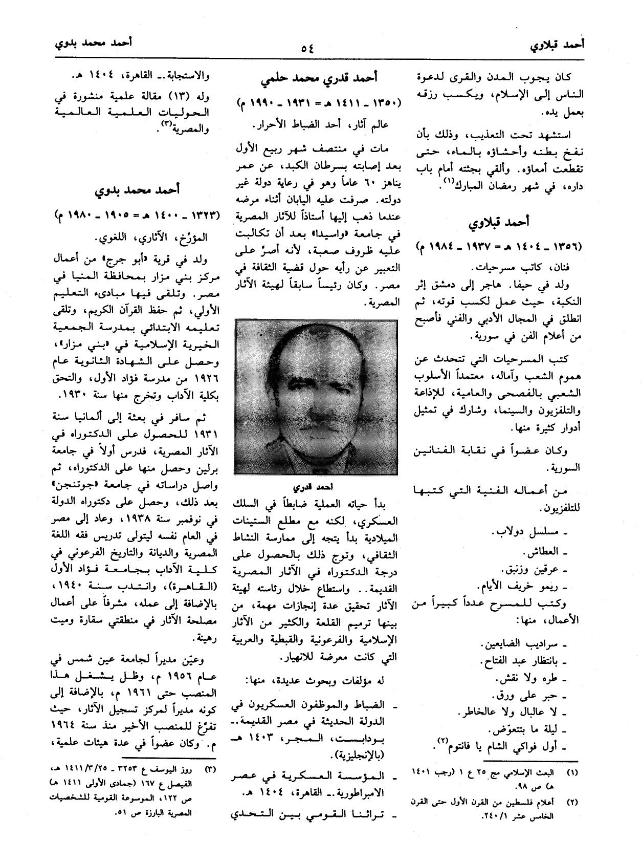 (¬3) روز اليوسف ع 3253 - 25/ 3/ 1411 هـ، الفيصل ع 167 (جمادى الأولى 1411 هـ) ص 122، الموسوعة القومية للشخصيات المصرية البارزة ص 51.