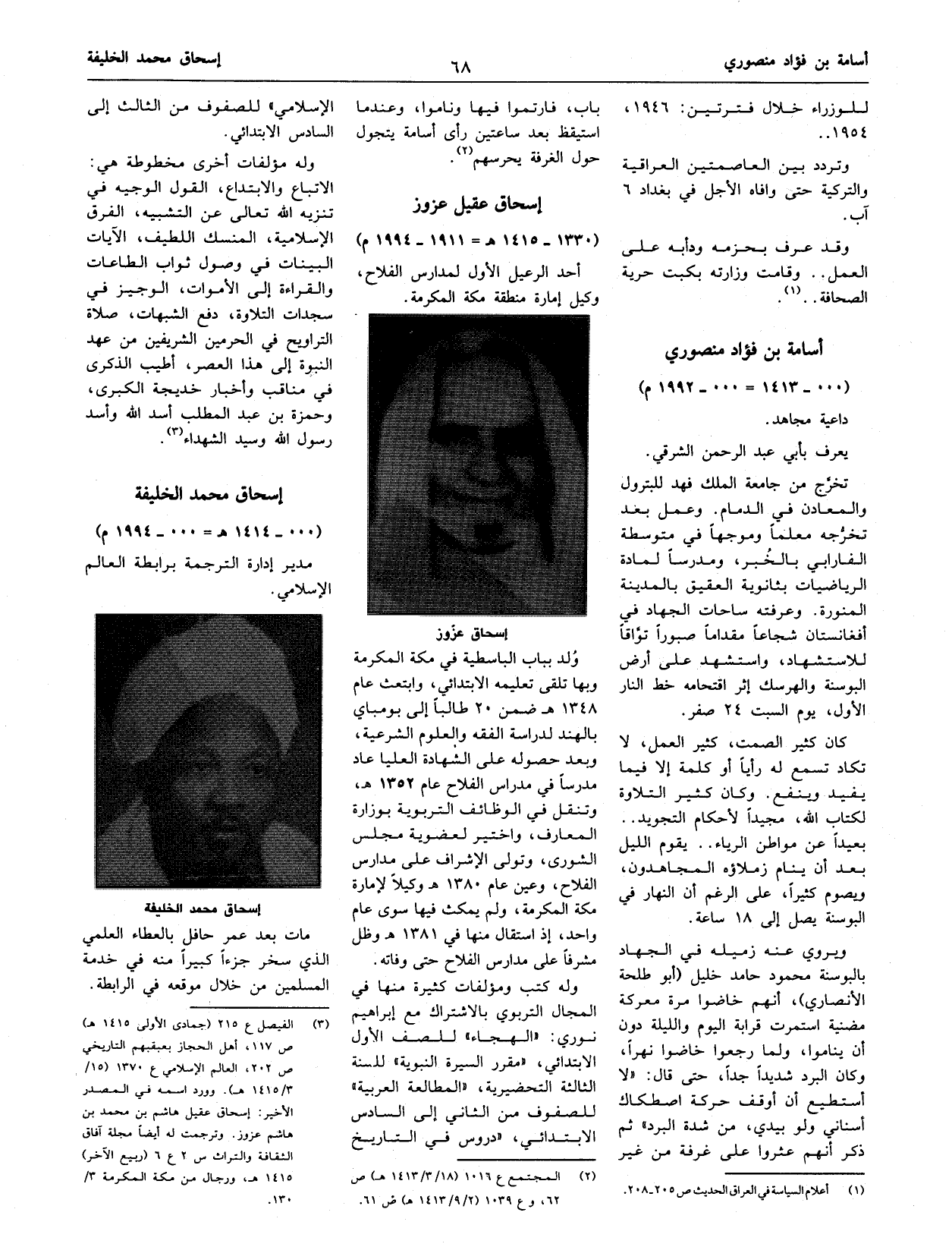 (¬3) الفيصل ع 215 (جمادى الأولى 1415 هـ) ص 117، أهل الحجاز بعبقبهم التاريخي ص 202، العالم الإسلامي ع 1370 (15/ 3/ 1415 هـ). وورد اسمه في المصدر الأخير: إسحاق عقيل هاشم بن محمد بن هاشم عزوز. وترجمت له أيضا مجلة آفاق الثقافة والتراث س 2 ع 6 (ربيع الآخر) 1415 هـ، ورجال من مكة المكرمة 3/ 130.