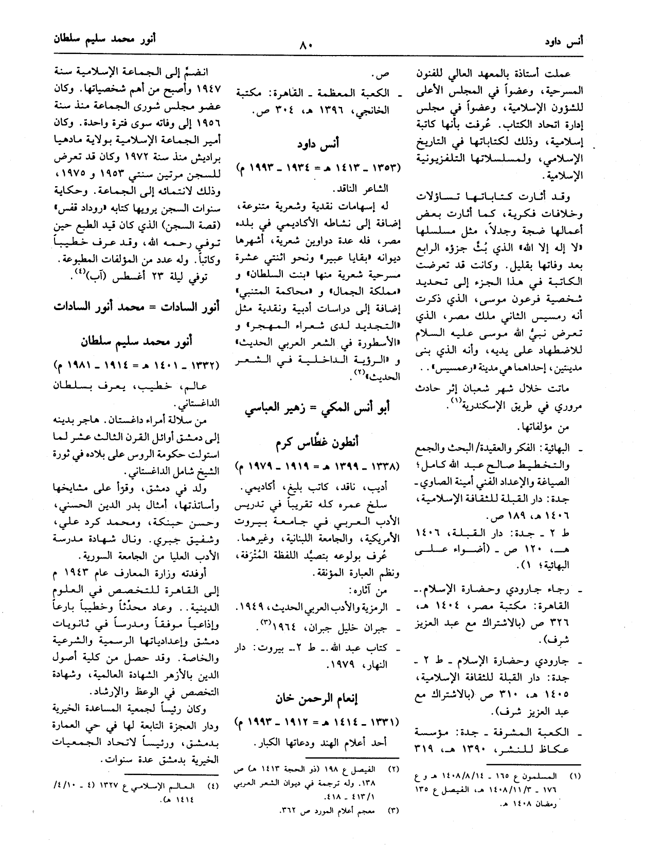 (¬1) المسلمون ع 135 - 14/ 8/ 1408 هـ وع 176 - 3/ 11/ 1408 هـ، الفيصل ع 135 رمضان 1408 هـ.