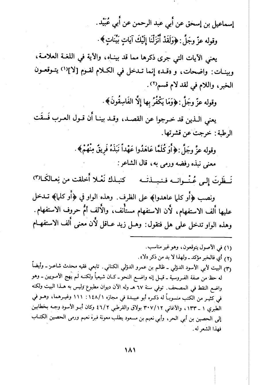 وقوله عزَّ وجلَّ: (وَلَقَدْ أَنْزَلْنَا إِلَيْكَ آيَاتٍ بَيِّنَاتٍ وَمَا يَكْفُرُ بِهَا إِلَّا الْفَاسِقُونَ (99)