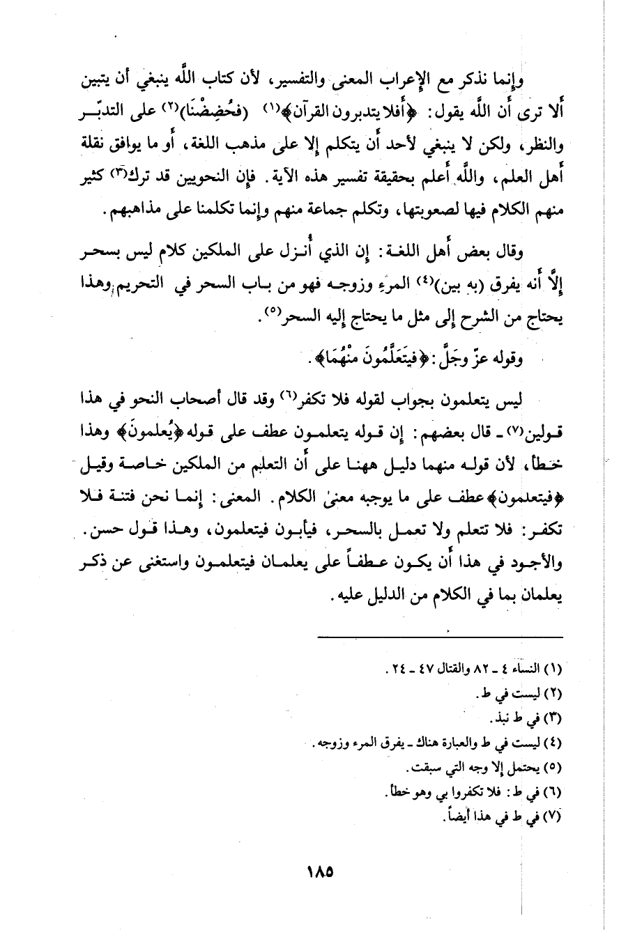 والأجود في هذا أن يكون عطفاً على يعلمان فيتعلمون واستغنى عن ذكر