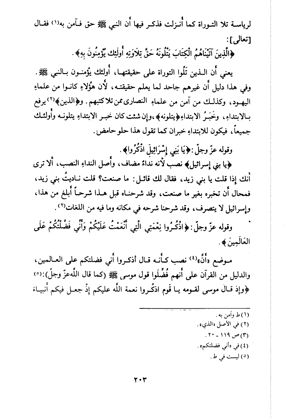 (يَا بَنِي إِسْرَائِيلَ) نصب لأنه نداء مضاف، وأصل النداءِ النصب، ألا ترى.